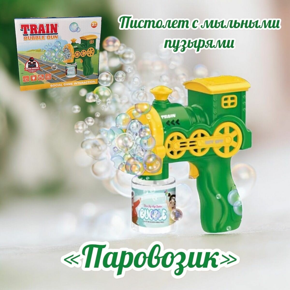 СохранитьГенератор мыльных пузырей Паровозик зеленый интересное: