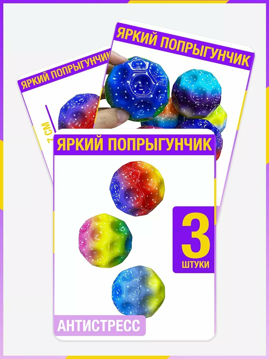 Попрыгунчик мяч антистресс яркий, 3 штуки интересное: