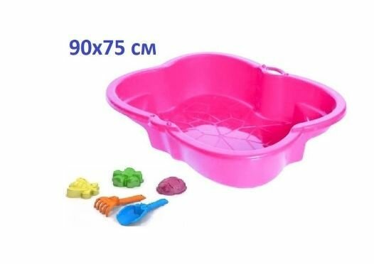 Песочница малиновая с сиденьями и песочным набором интересное: