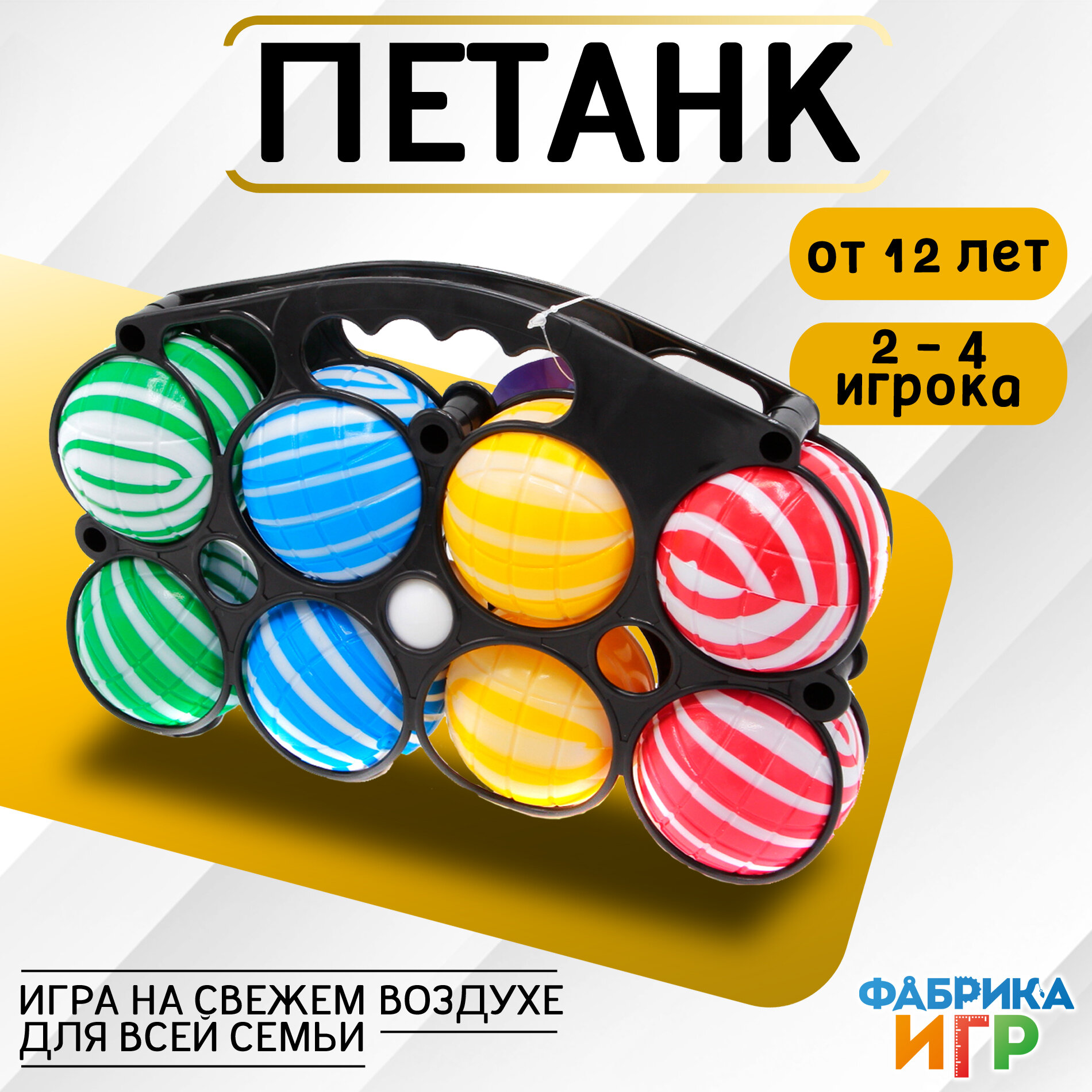 Фабрика Игр: Спортивная игра для улицы Петанк 6 шаров из пластика / Бочче для компании