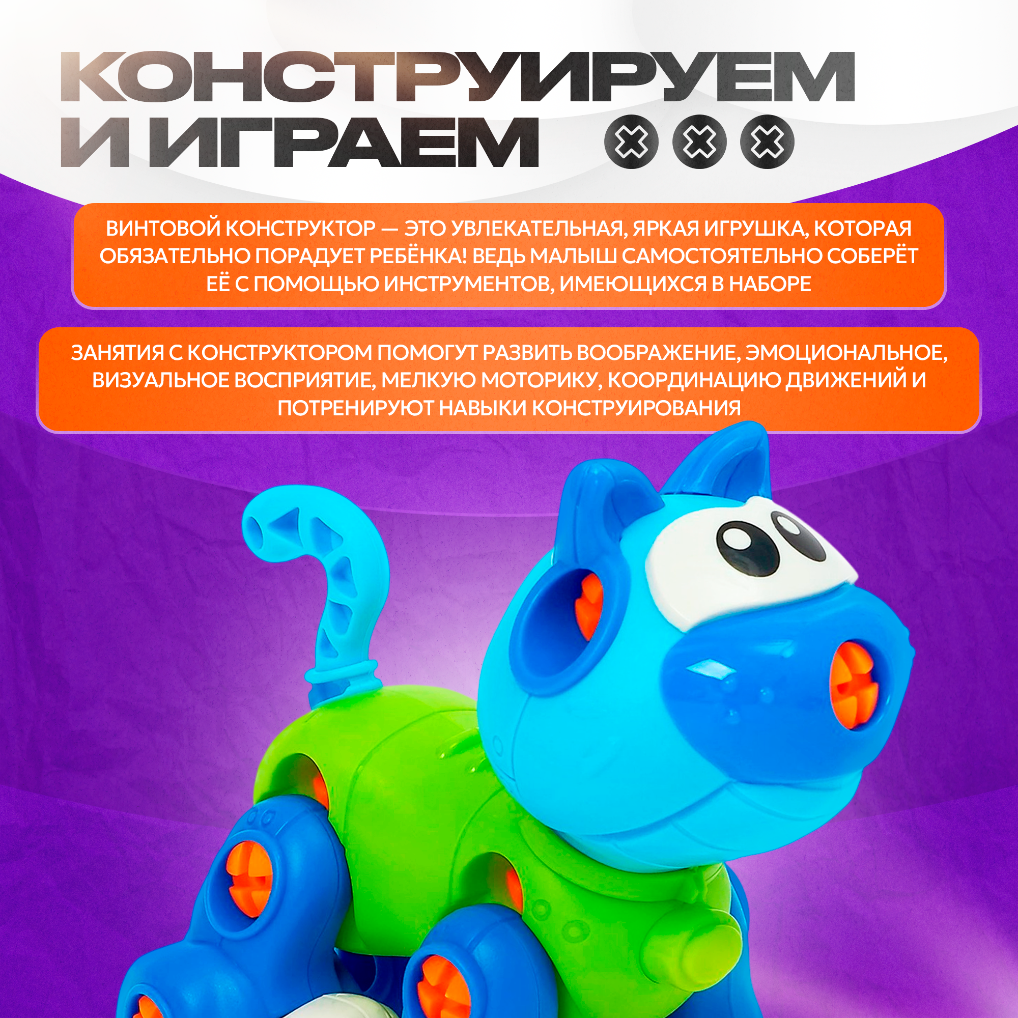 Конструктор винтовой "Кошечка", отвертка в комплекте, 43 детали, для детей от 3 лет, цвет микс интересное: