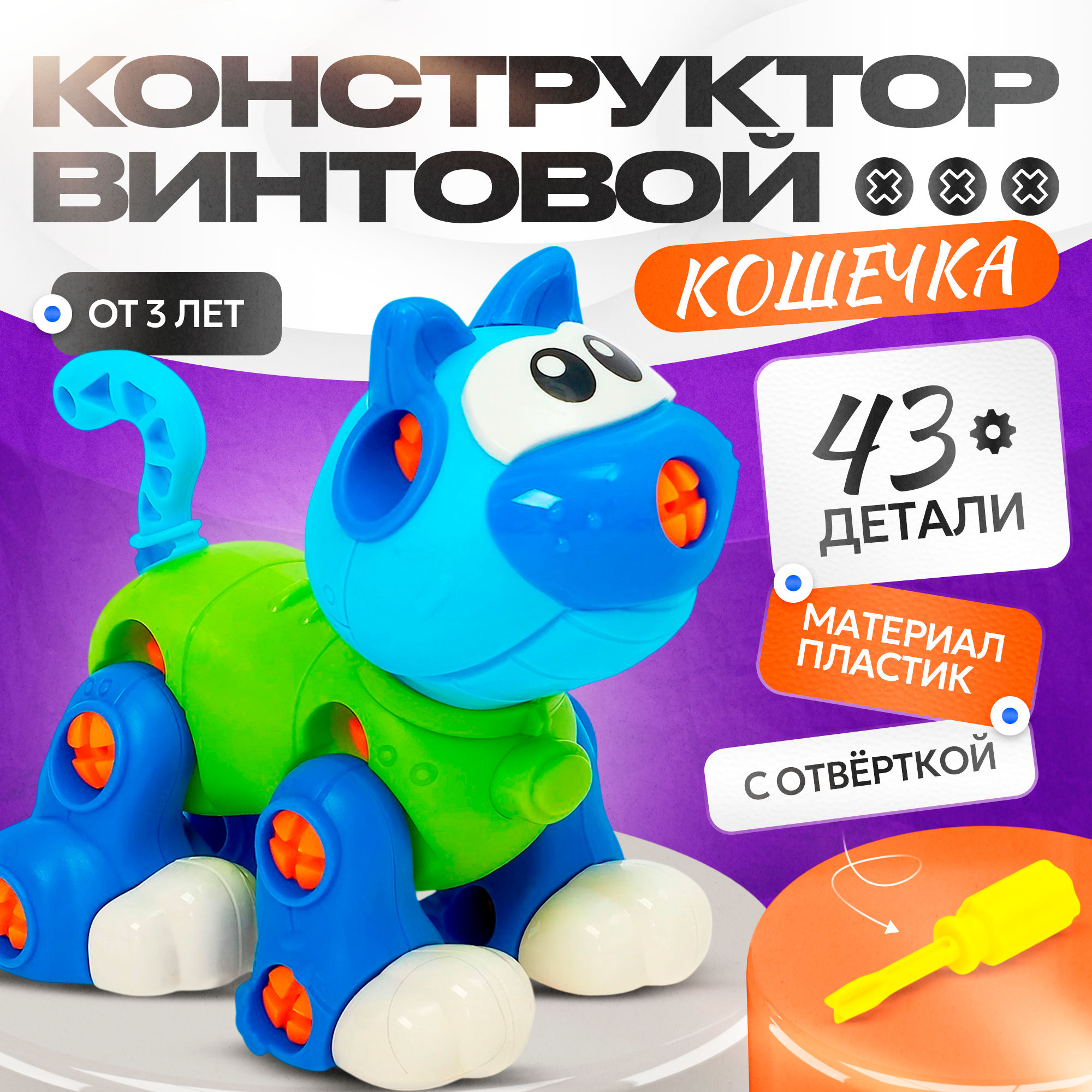 Купить Конструктор винтовой "Кошечка", отвертка в комплекте, 43 детали, для детей от 3 лет, цвет микс