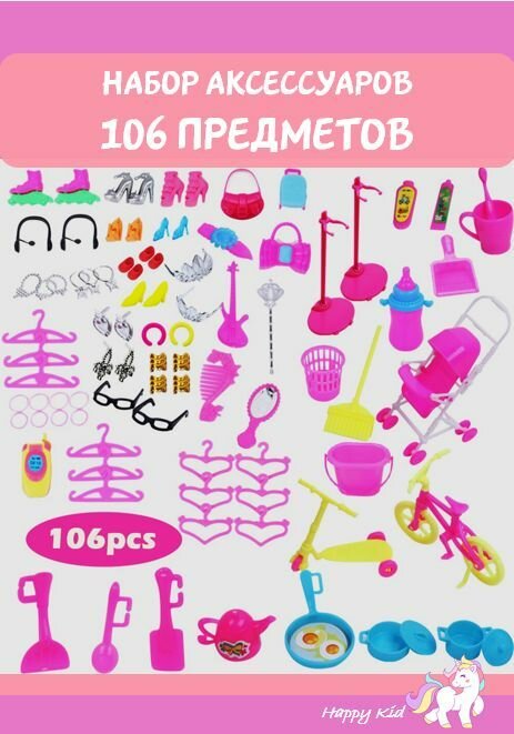 Купить Набор аксессуаров для кукол Барби, аксессуары для кукол, 106 предметов