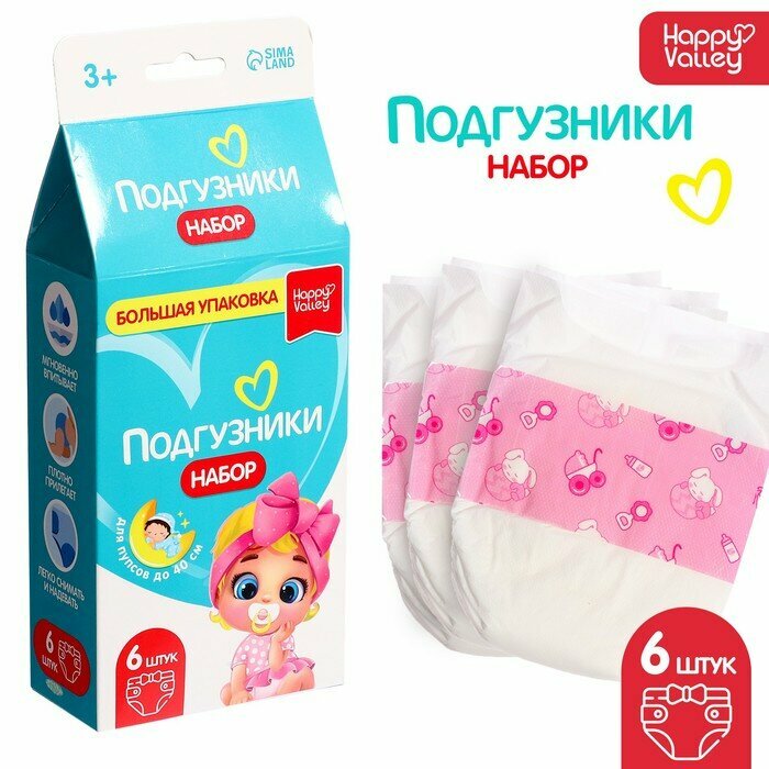 Купить Набор «Подгузники» для кукол, 6 штук