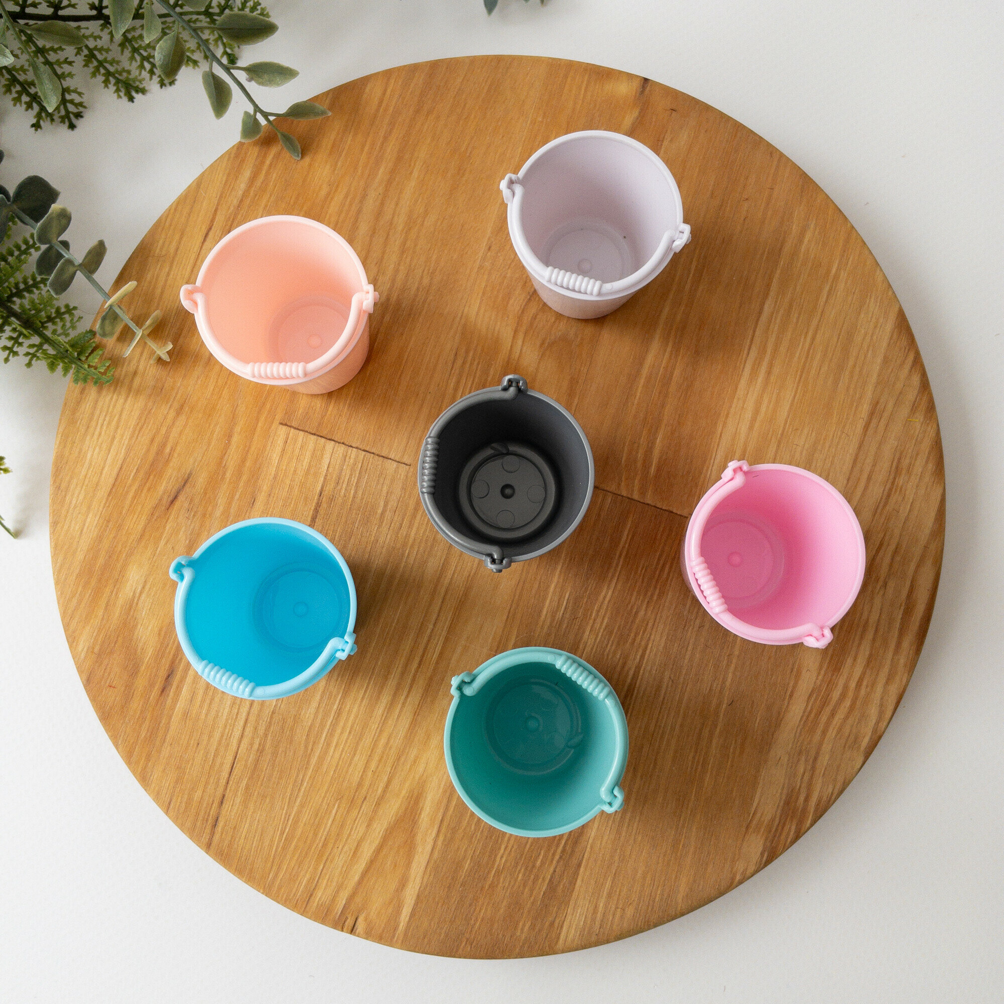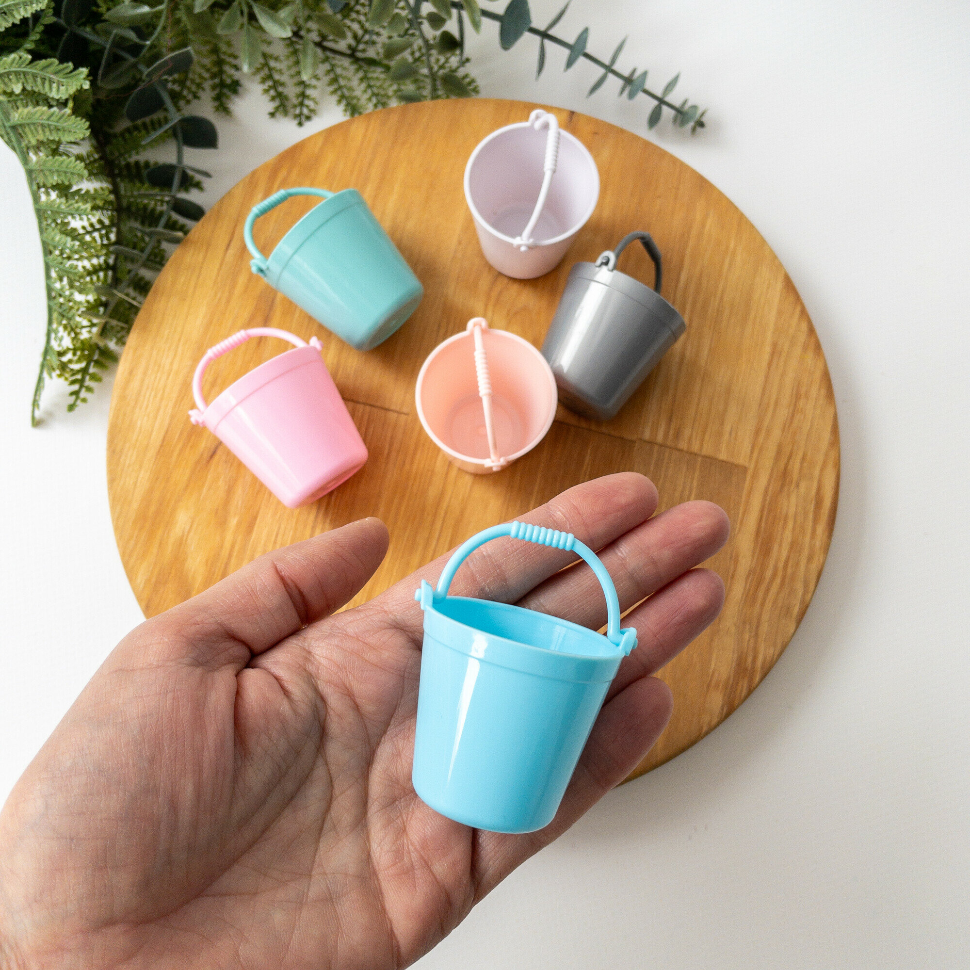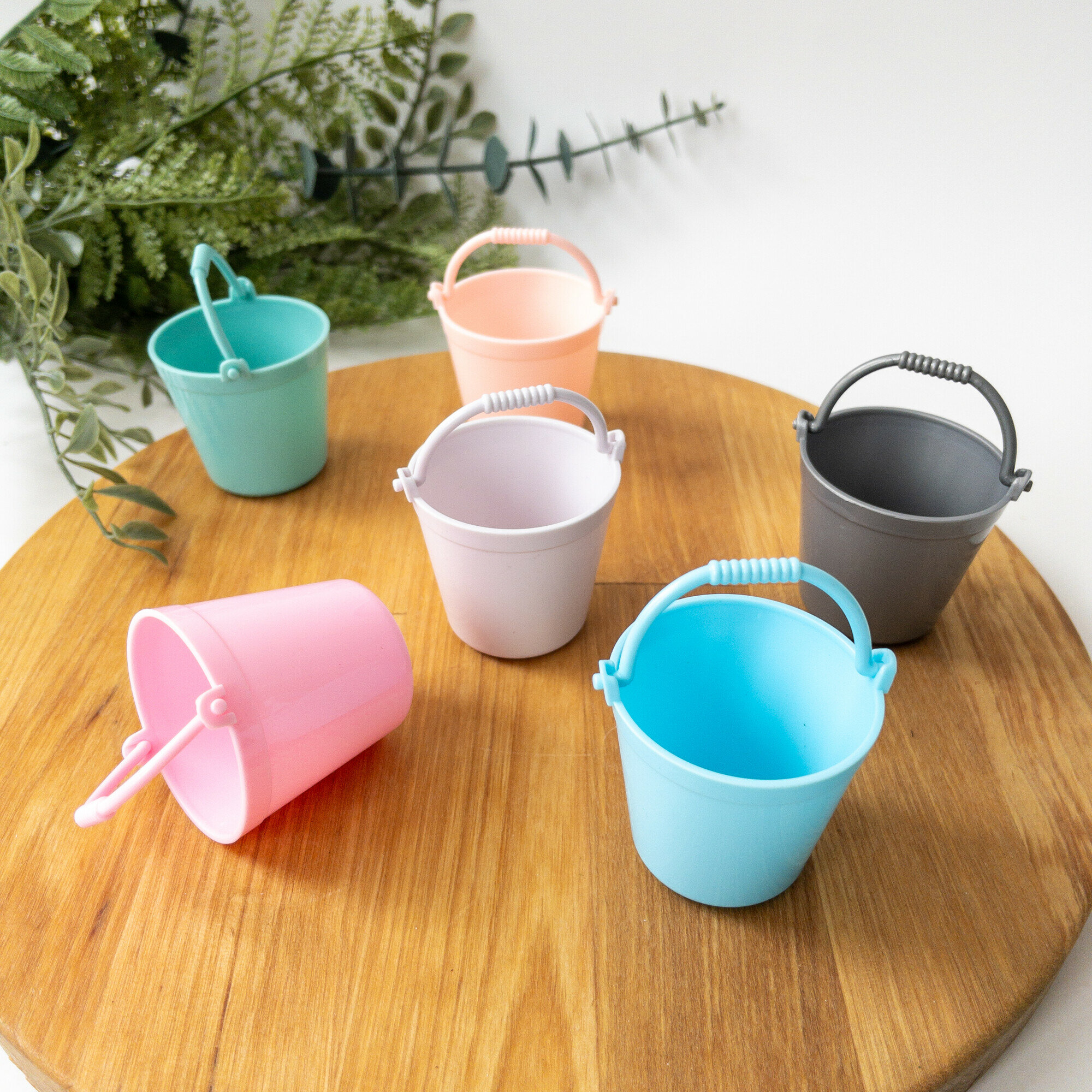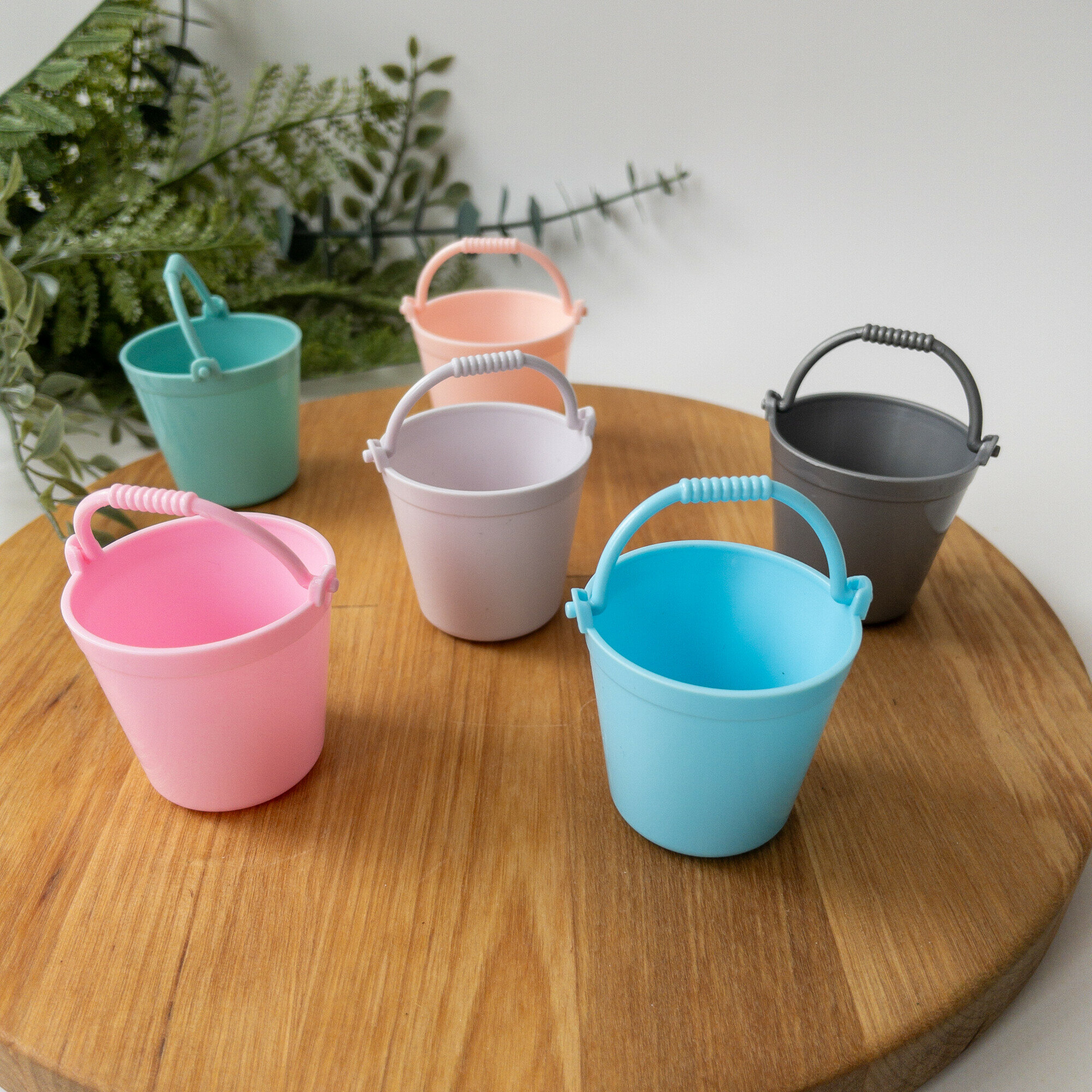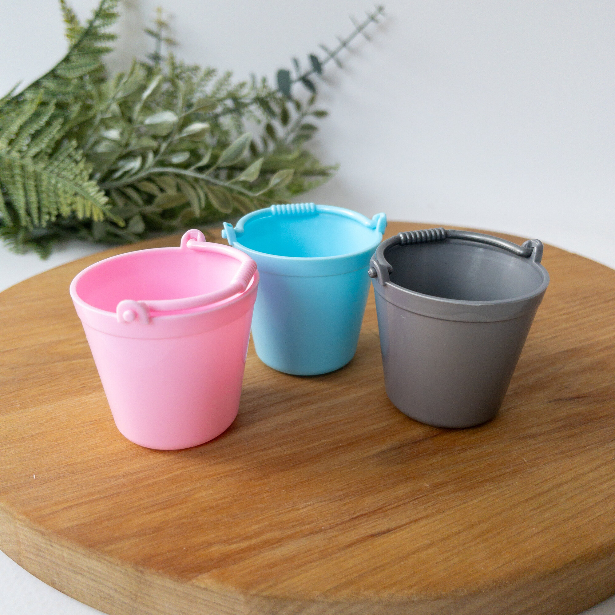 Купить Ведро пластиковое, миниатюра декоративная, цвет микс, размер 3,8*3 см, набор 3 шт.