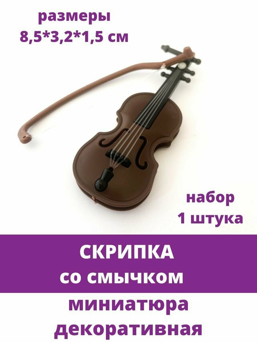 Купить Скрипка со смычком, миниатюра кукольная декоративная, музыкальный инструмент, 85*32*15 мм, 1 шт