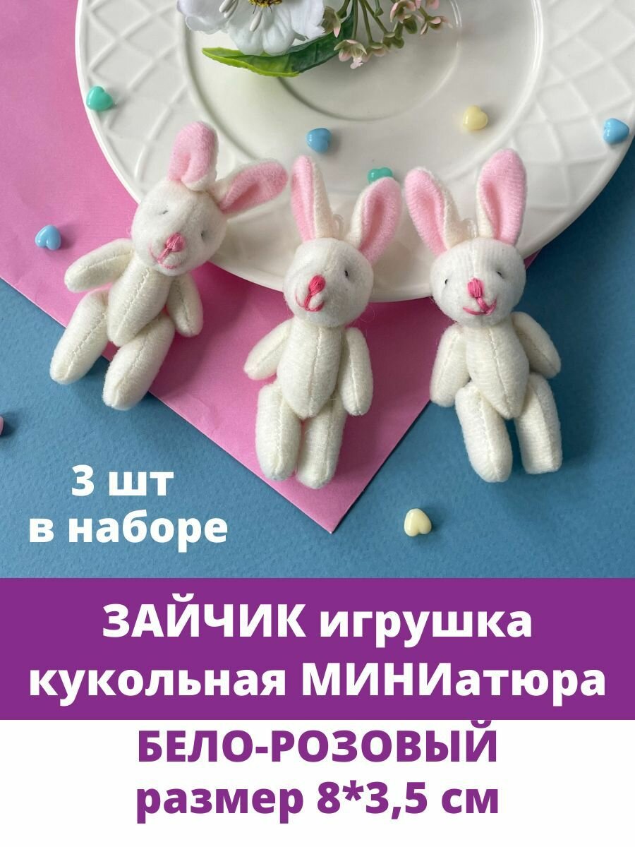 Купить Зайка игрушка для куклы, кукольная миниатюра, Бело-розовый цвет, 3 шт.