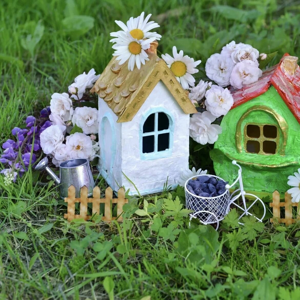 Домик керамический, фигурки декоративные, кукольная миниатюра, набор 2 шт.