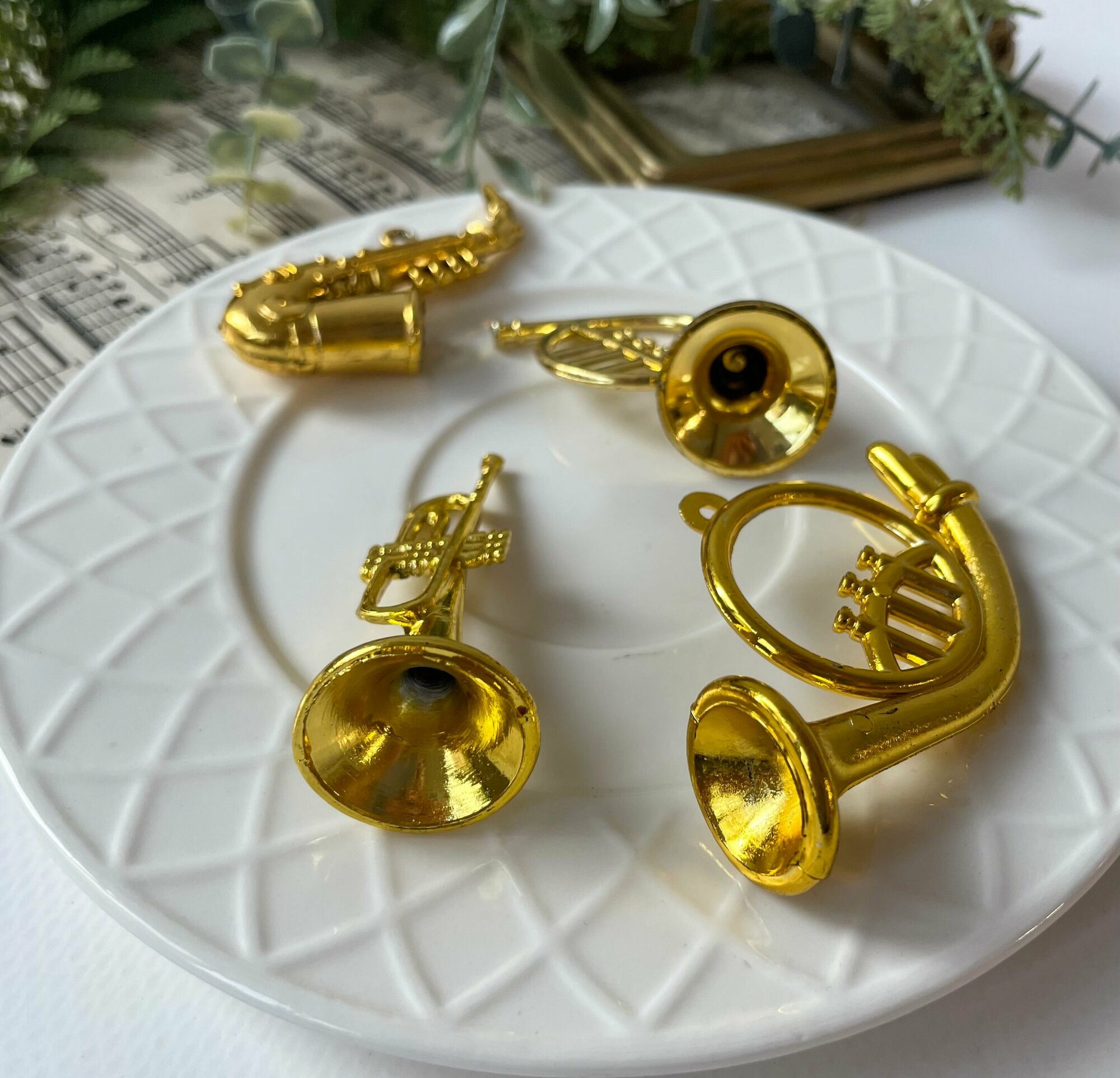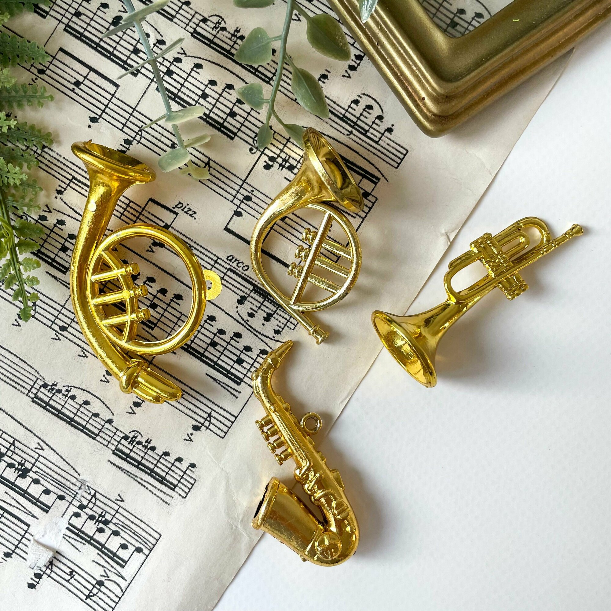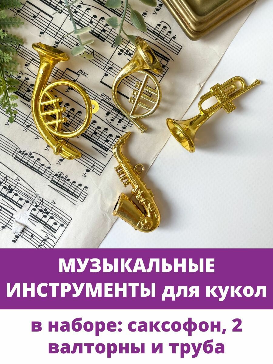 Купить Музыкальные инструменты, кукольная миниатюра декоративная, саксофон, труба, валторны, в наборе 4 шт.