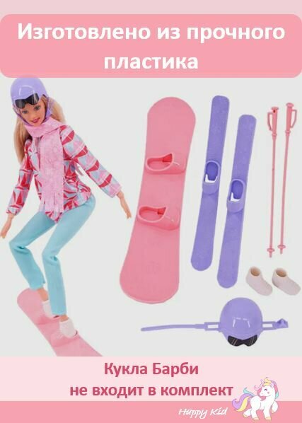Купить Набор с лыжами и сноубордом для куклы Барби,София