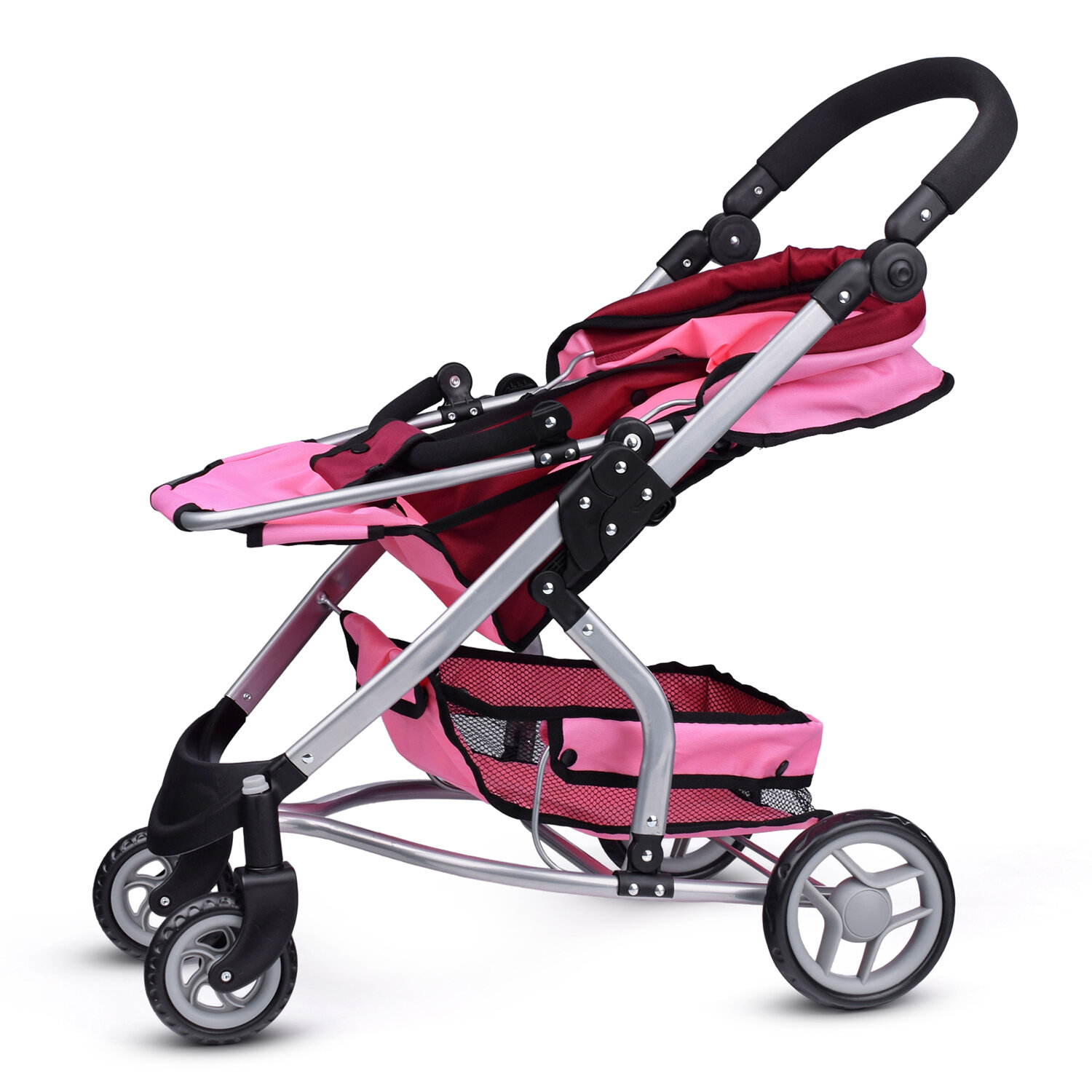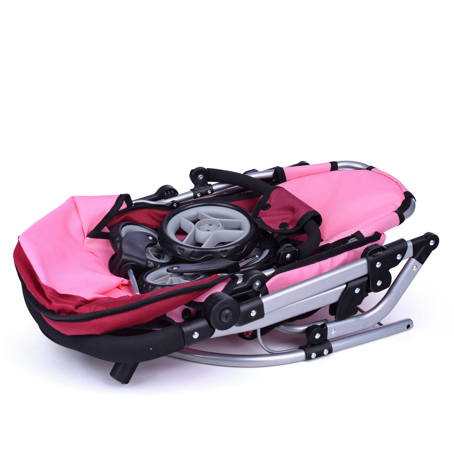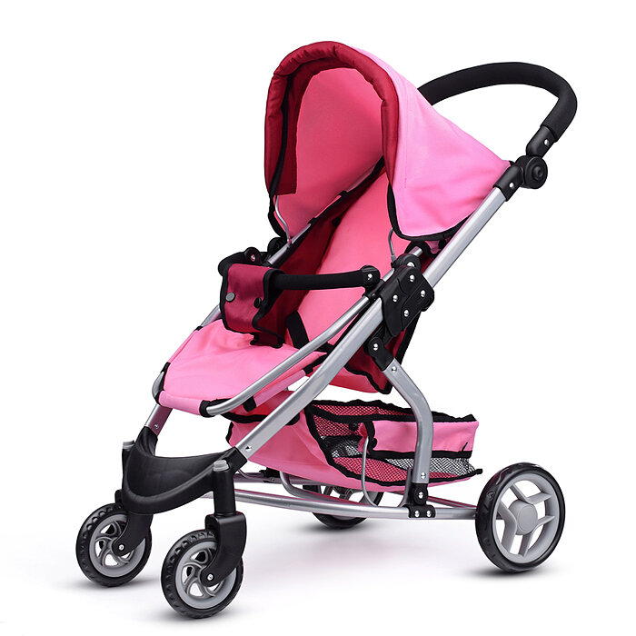 Купить Коляска для кукол 9666 металлическая, цвет розово-бордовый