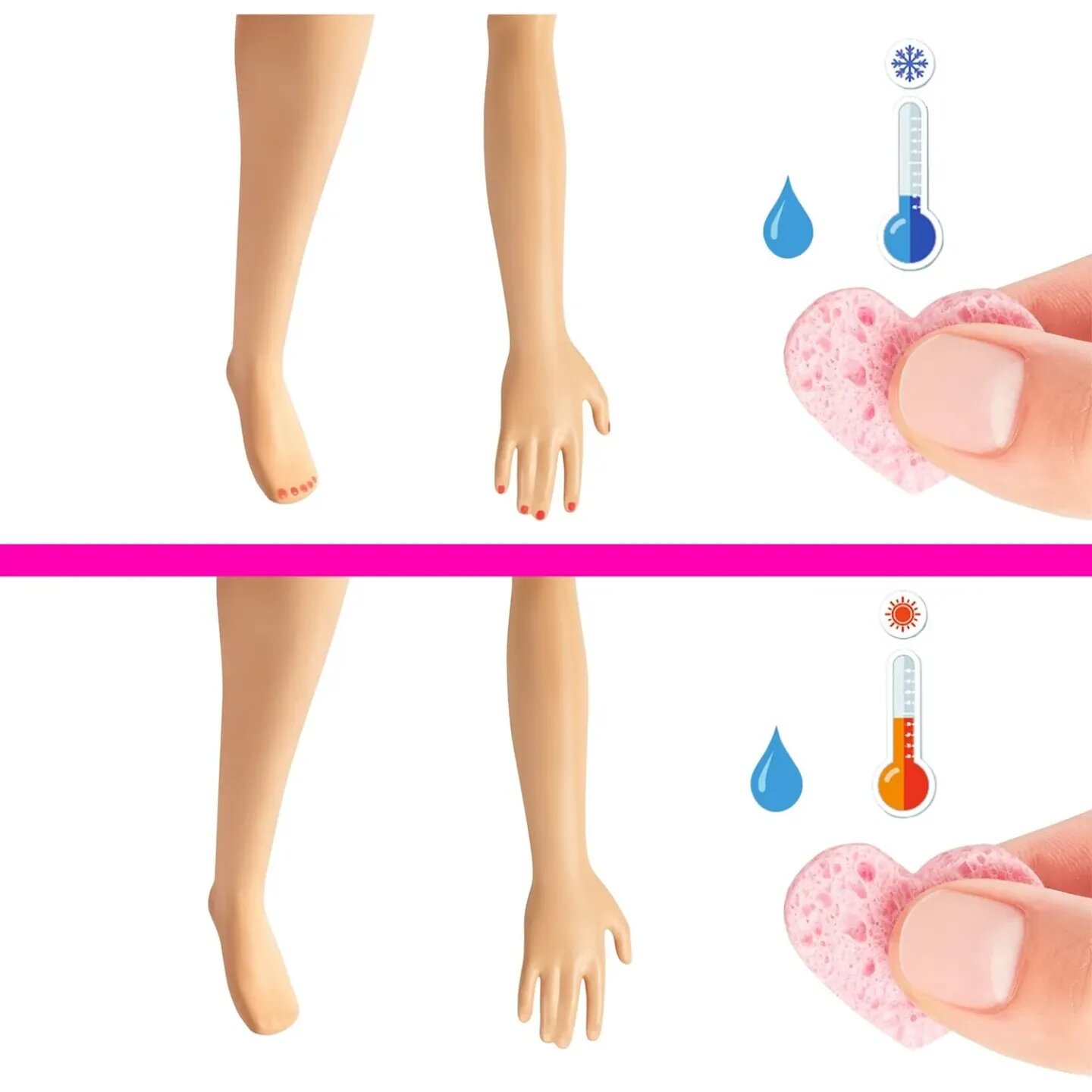 | Дополнительная информация | заполнить ванночку для ног водой и добавить в нее специальный порошок, который начнет пениться, имитируя SPA-процедуру; ноготки куклы Барби на руках и ногах меняют цвет, если прикоснуться к ним влажной губкой, чередуя теплую и холодную воду |
