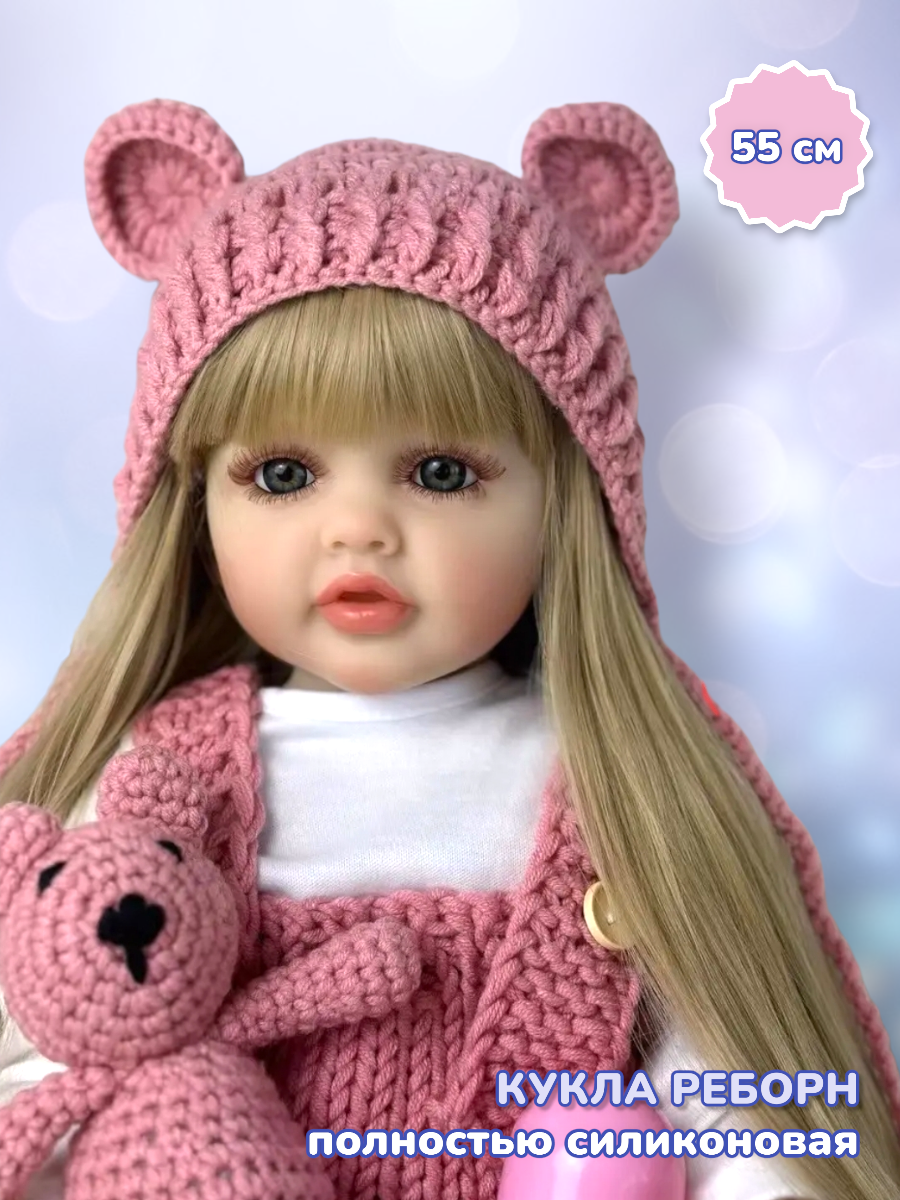 Кукла Реборн reborn силиконовая 55см, кудрявая блондинка