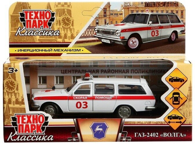 Модель машины Технопарк ГАЗ-2402 Волга, Скорая помощь, инерционная, свет, звук 2402-12SLАМВ-WН