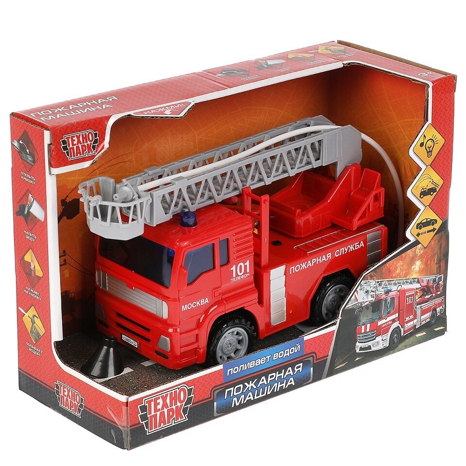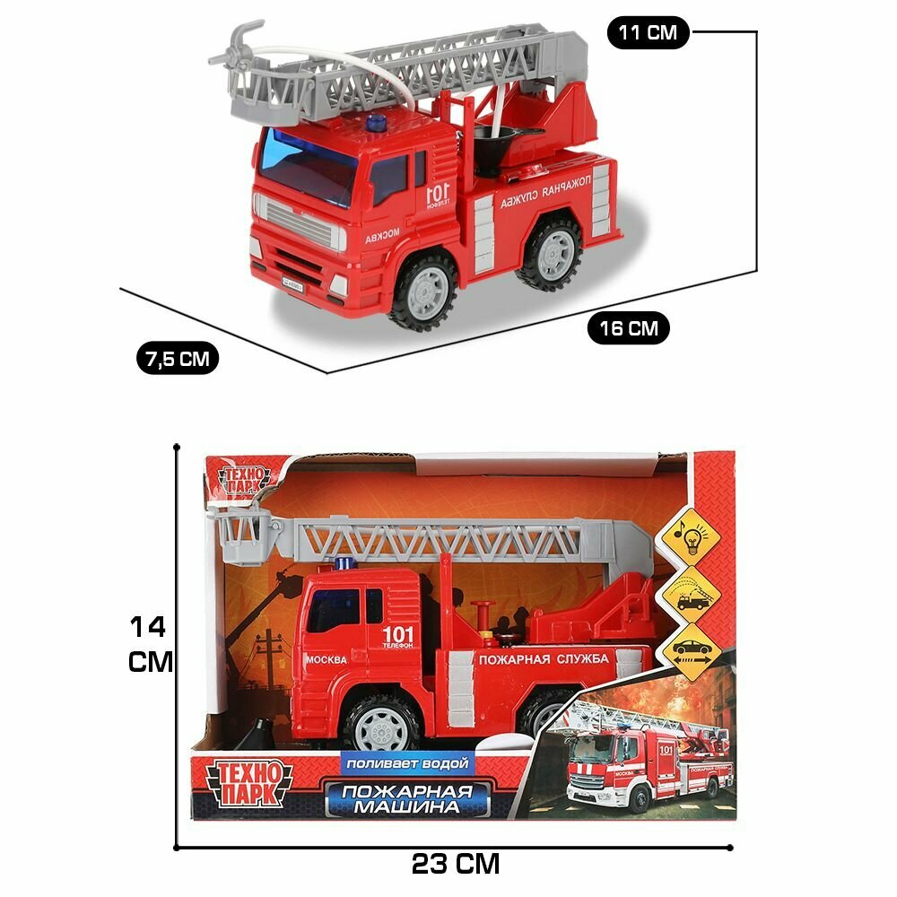 Купить Игрушечная машинка для детей Машина пластик свет-звук пожарная машина 16см,с водой, инерц