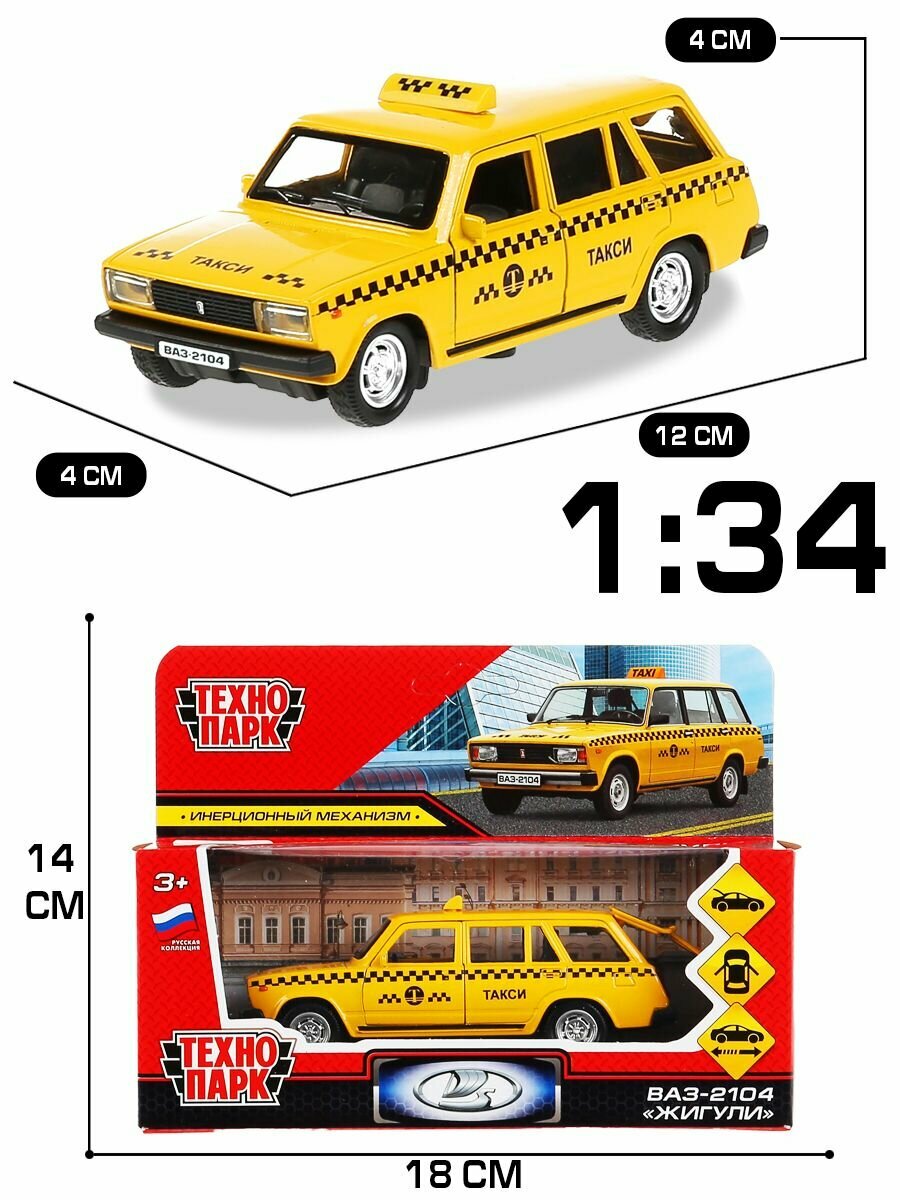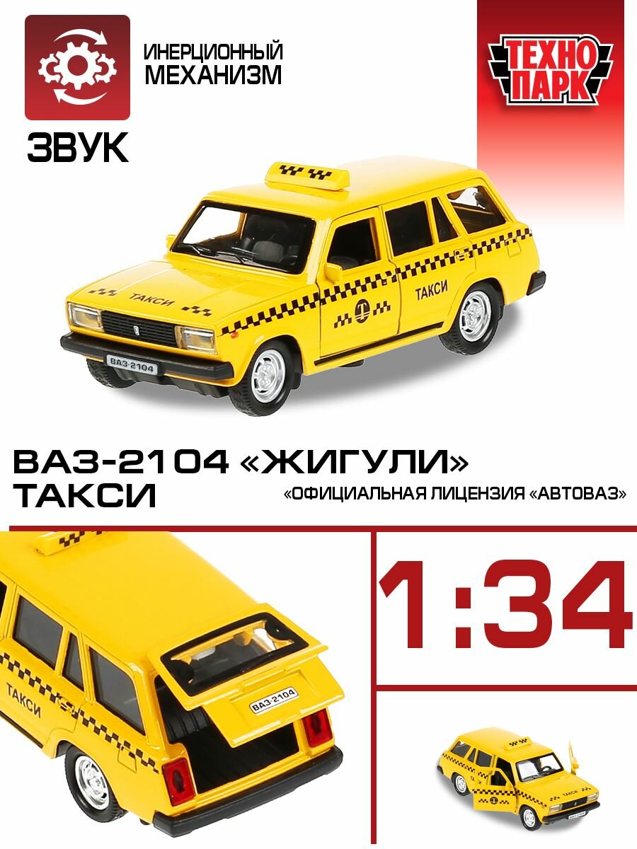 Купить Легковой автомобиль технопарк ВАЗ-2104 жигули такси (2104-12TAX-YE) 1:32, 12 см, желтый