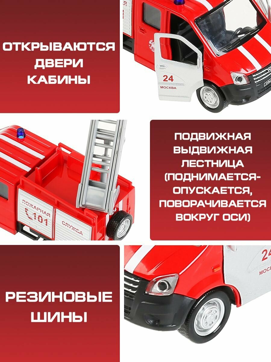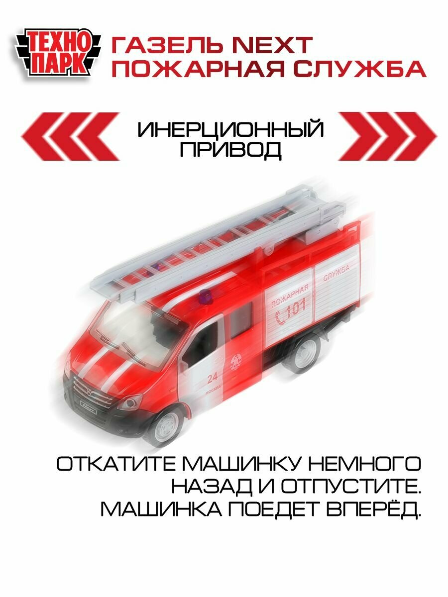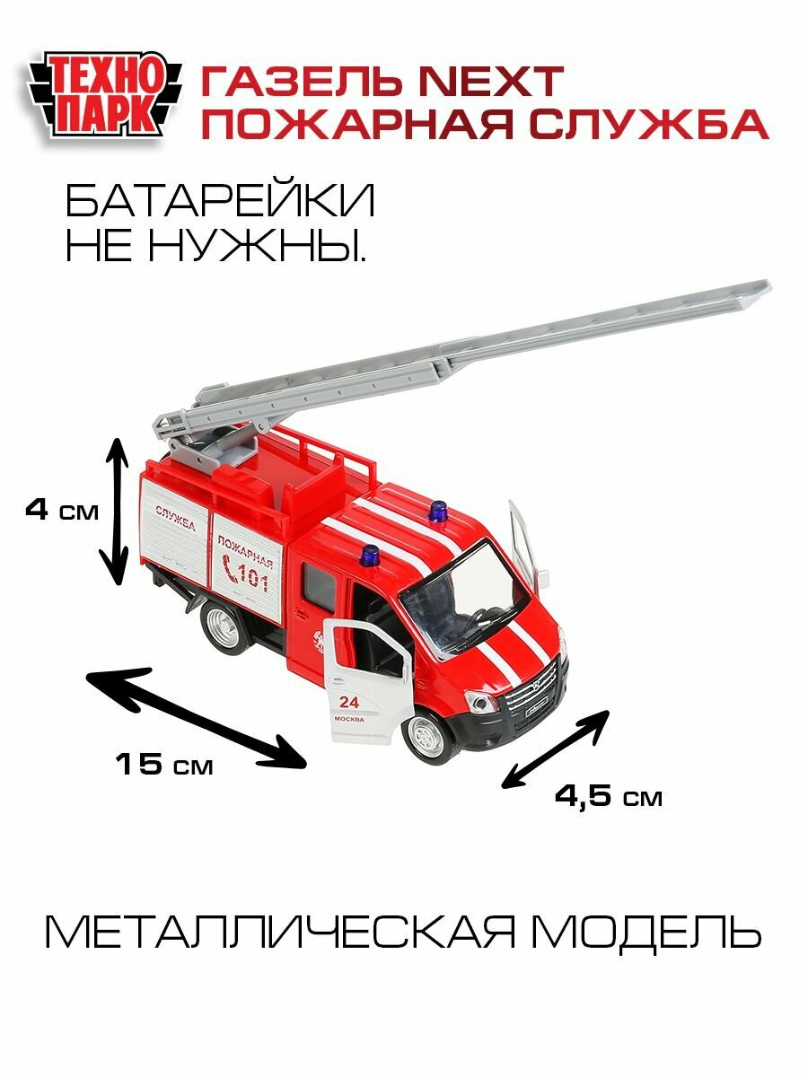 Купить Машинка игрушка детская для мальчика Газель Некст Пожарная Технопарк модель металлическая коллекционная инерционная с открывающимися дверьми 15 см