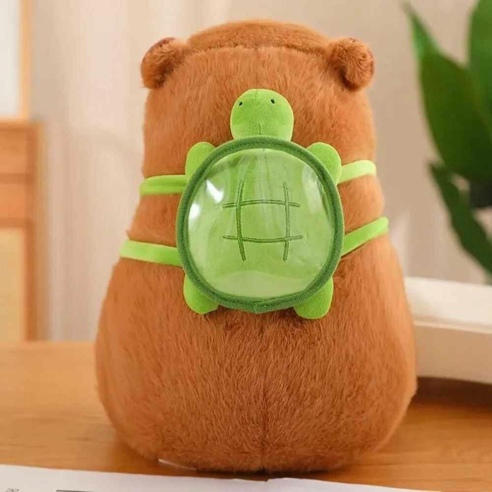 Мягкая игрушка Капибара с рюкзаком черепашкой 20 см