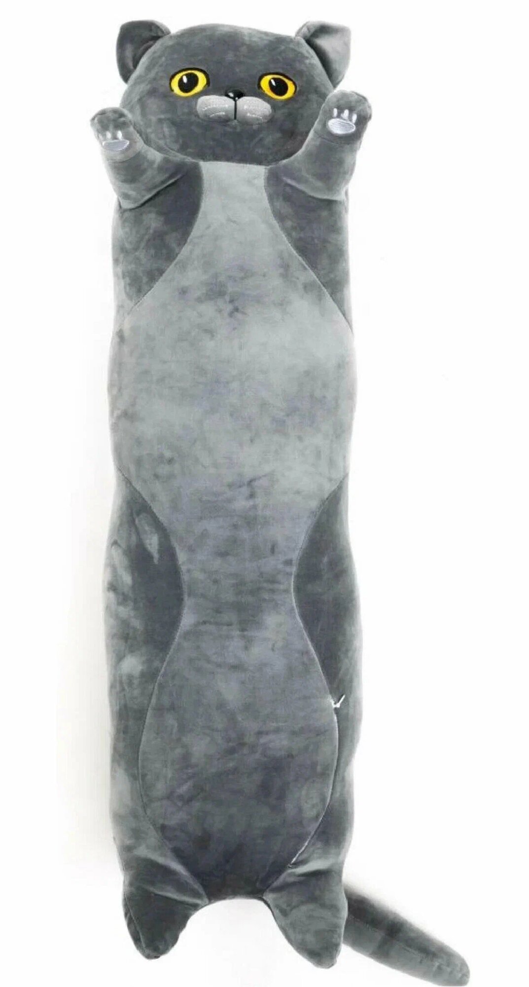 Мягкая игрушка длинный Кот батон Британец, серый, 110 см