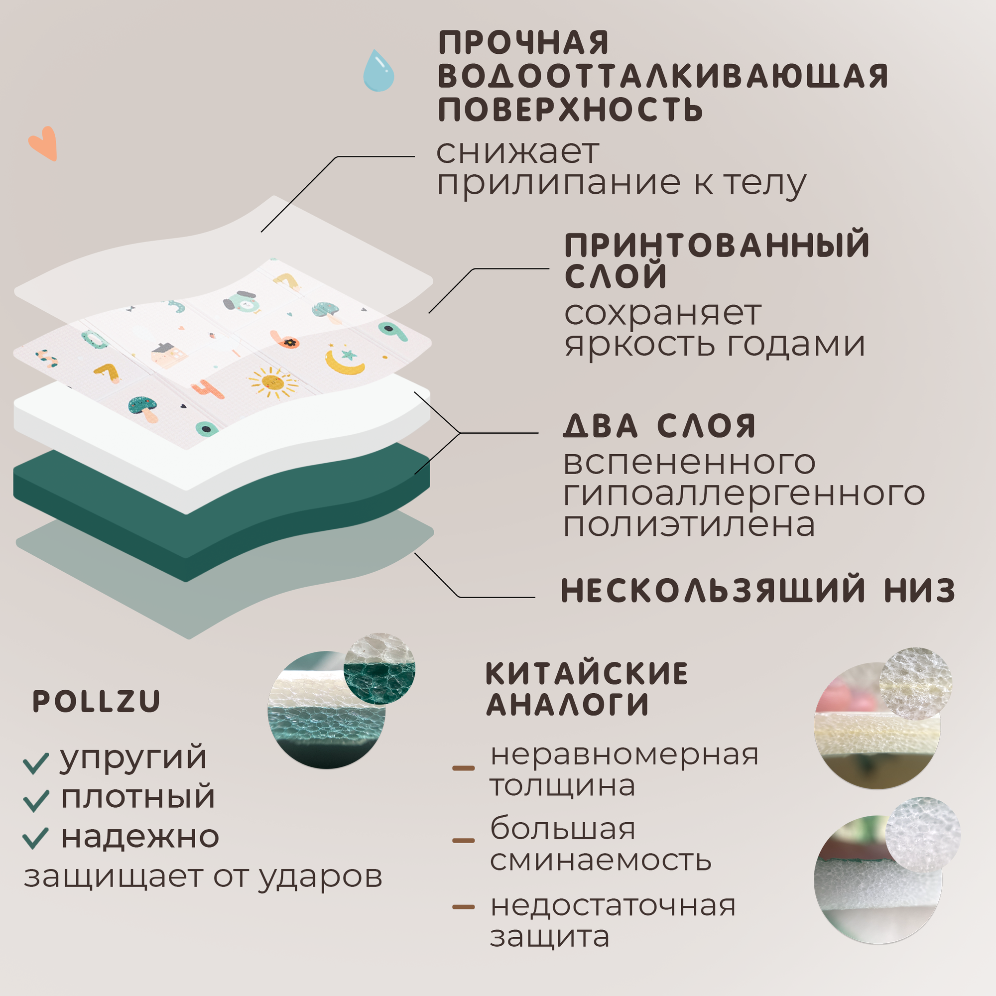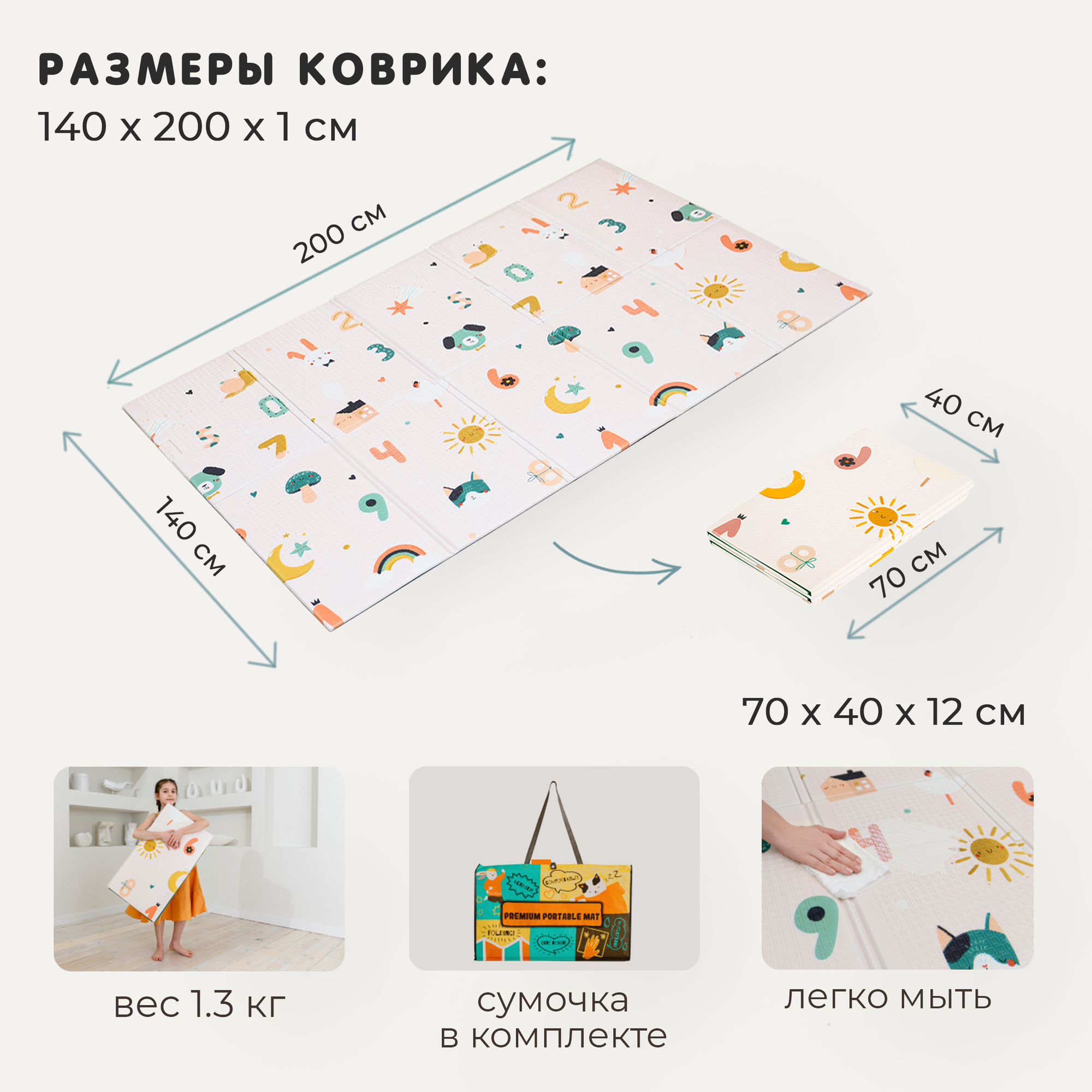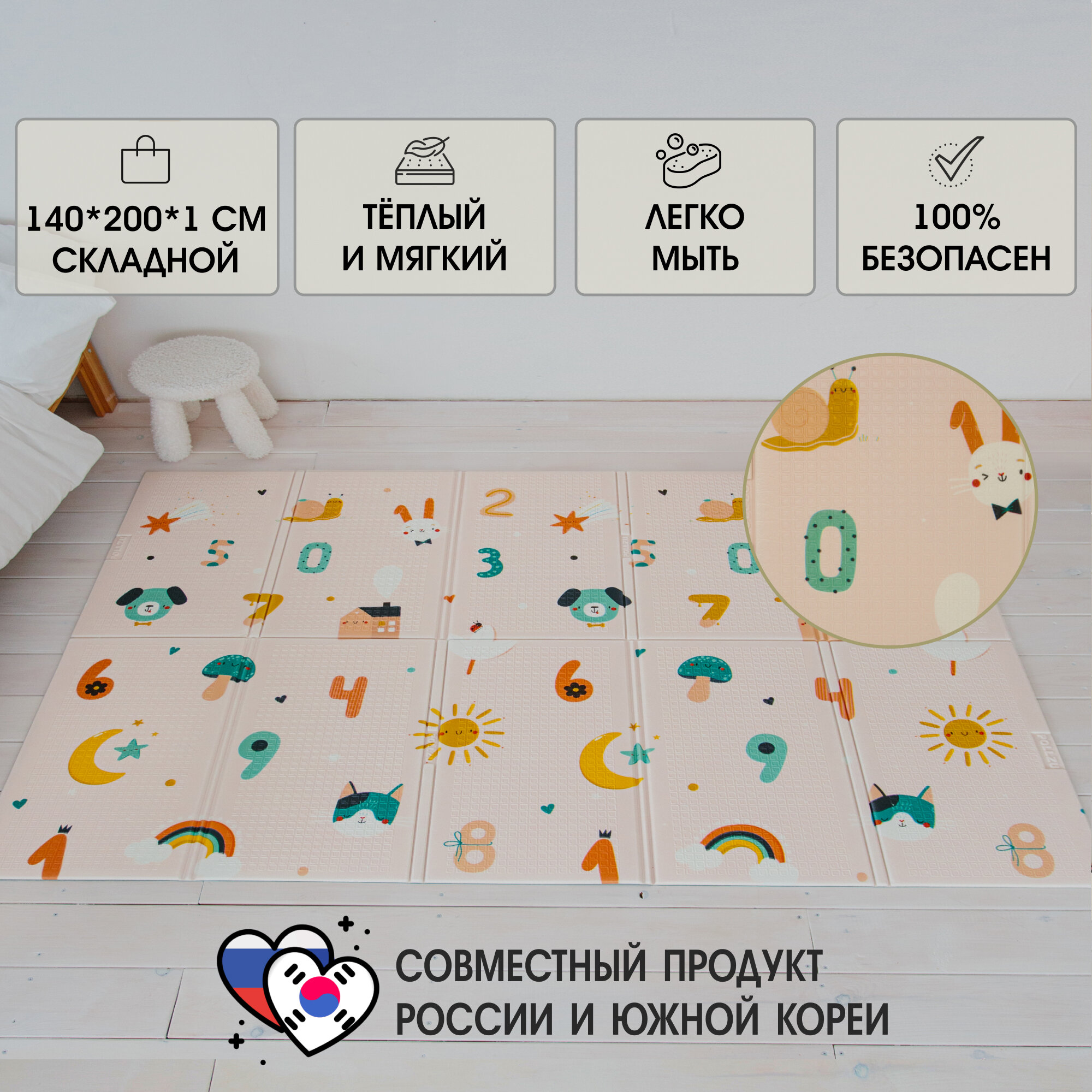 Складной детский коврик игровой развивающий для ползания для малышей Pollzu Весёлый счет, 200*140*1 см интересное: