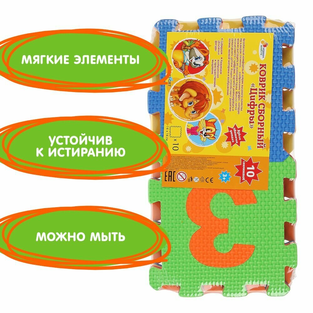 СохранитьКоврик пазл игровой развивающий напольный для малышей Учим цифры Играем вместе 10 элементов интересное:
