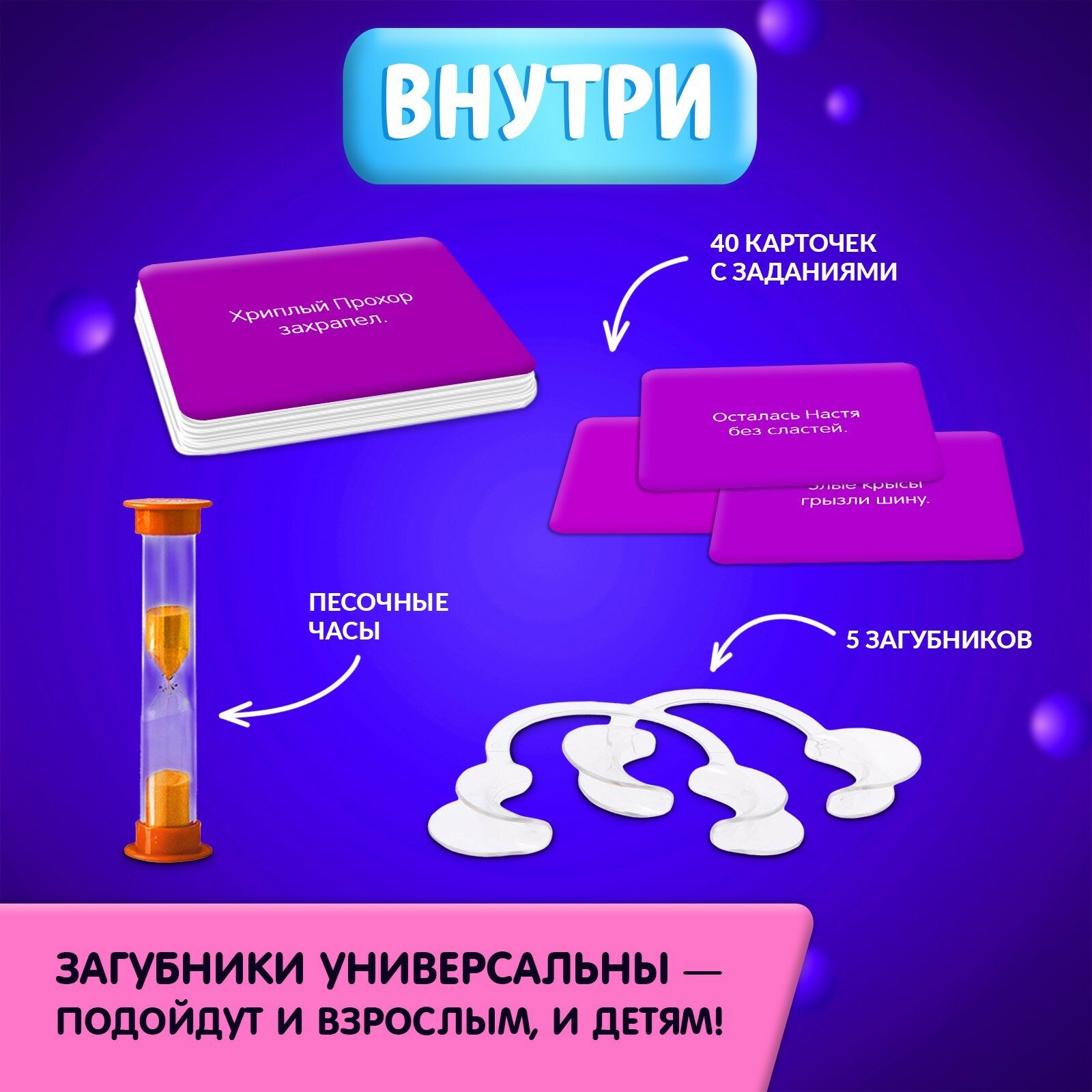 | Комплектация | 40 карточек (8 х 6 х 0,1 см); 5 загубников (10 х 13,5 х 1,3 см); песочные часы (2,5 х 2,5 х 8,5 см). |