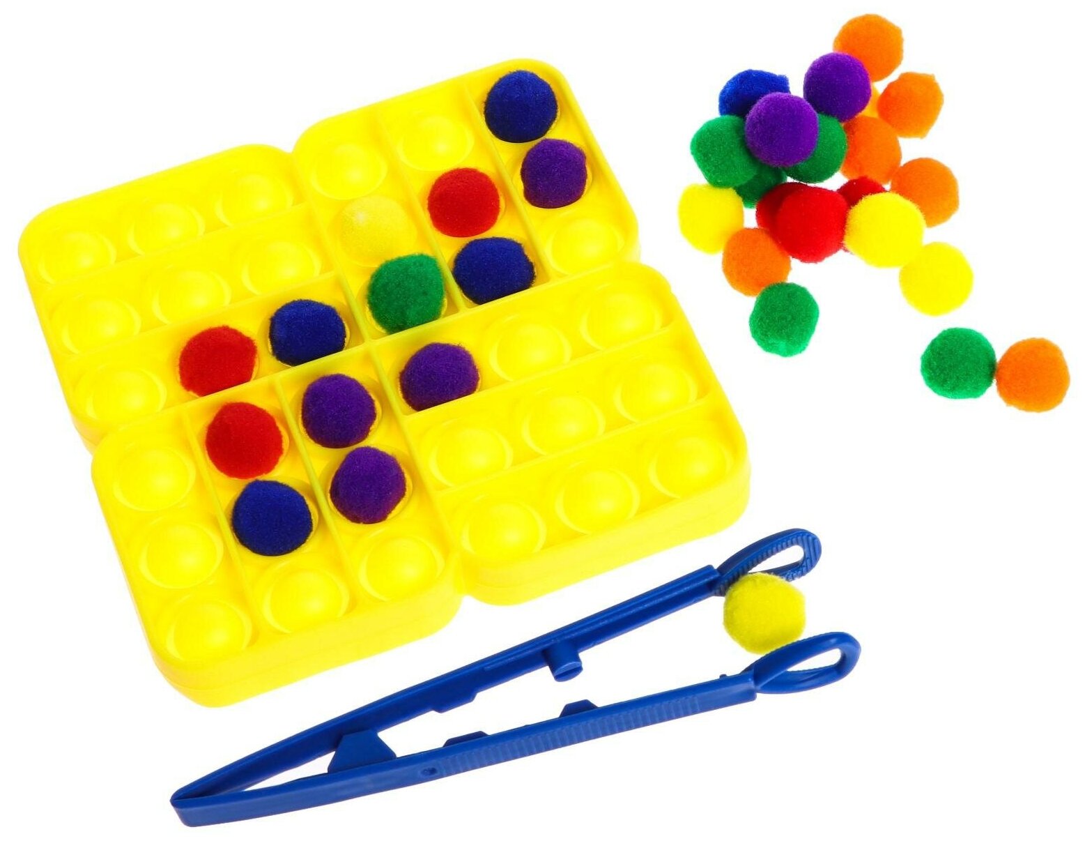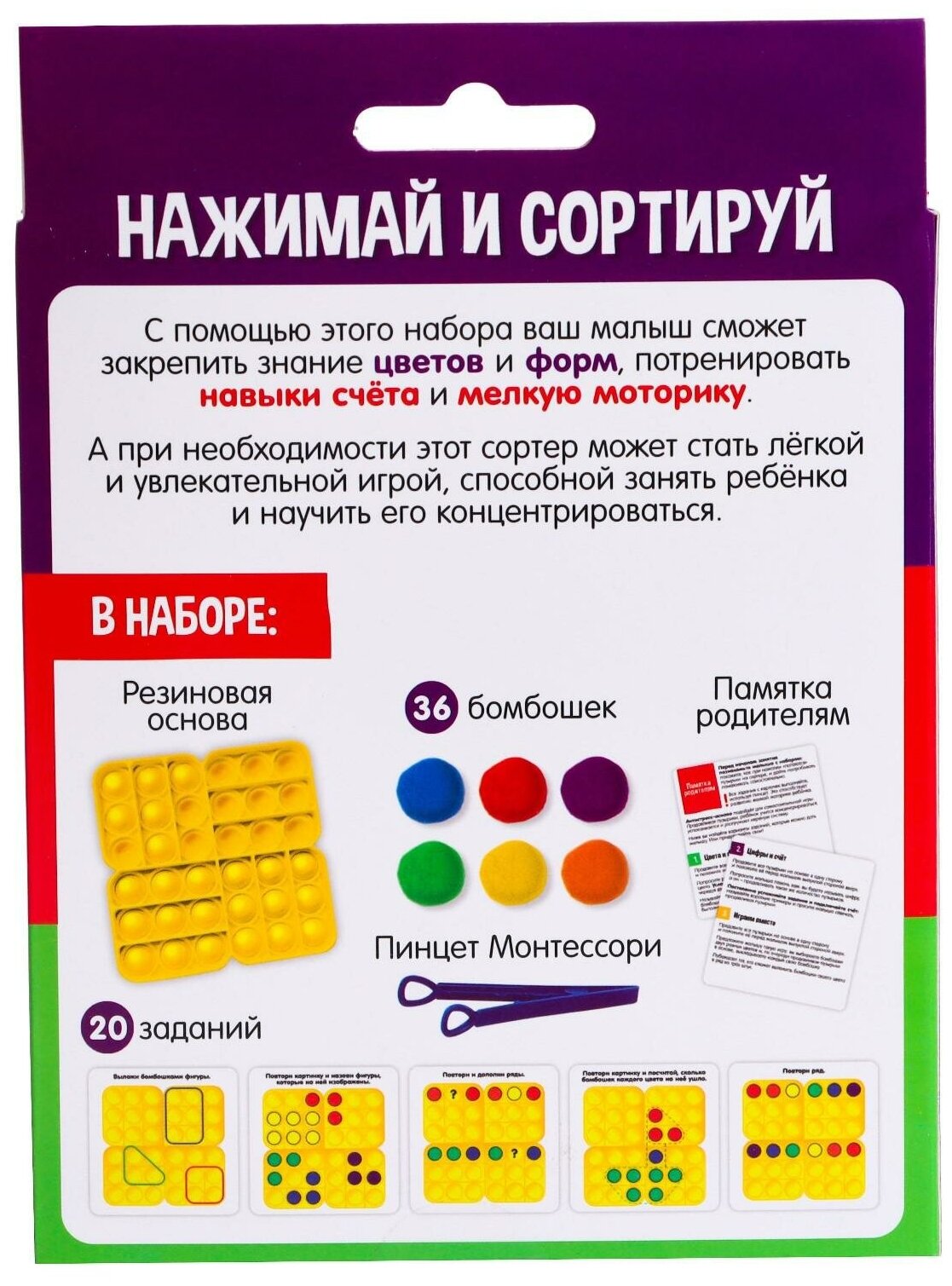 Купить Развивающий набор "Нажимай и сортируй", IQ-ZABIAKA, пинцет, 36 бомбочек, игровая основа, для детей и малышей