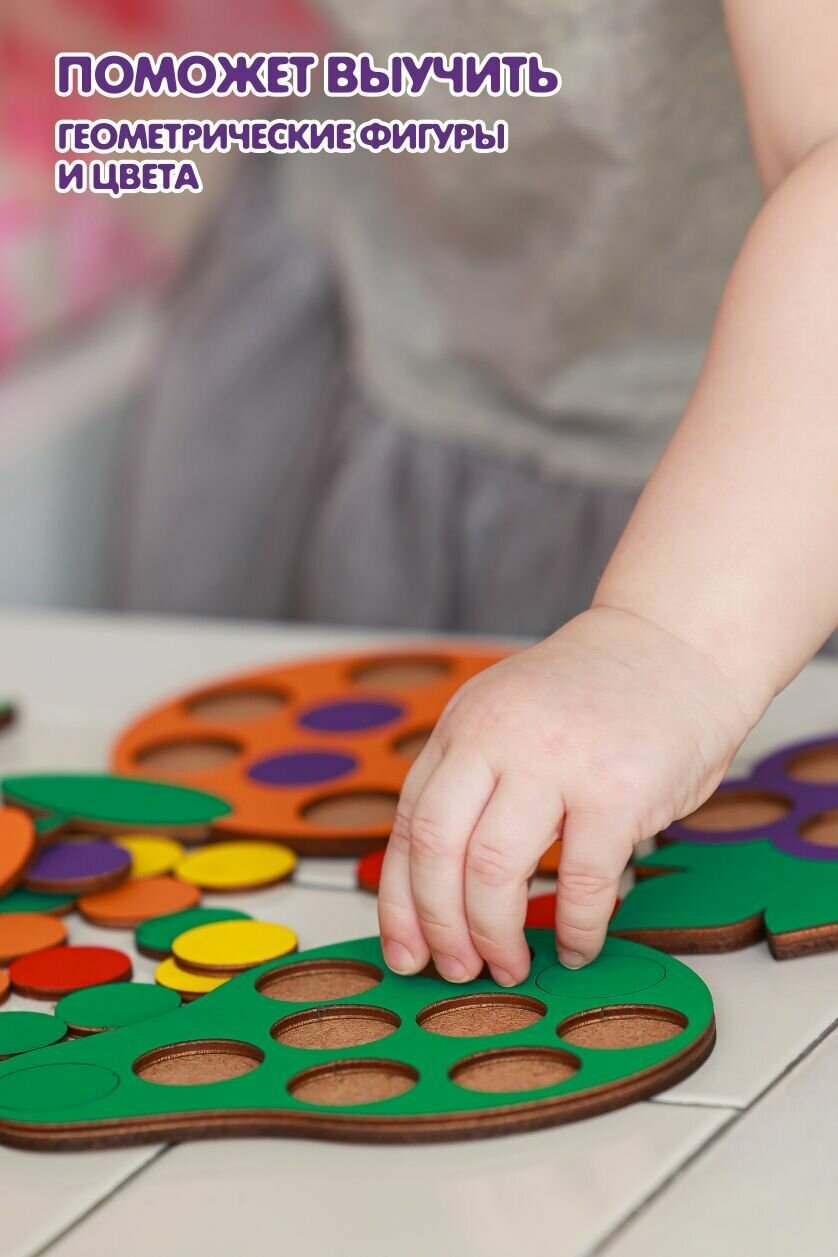 Развивающая игра Сортер Мозаика деревянная для мальчиков и девочек "Фрукты", монтессори, Kids Wooow интересное: