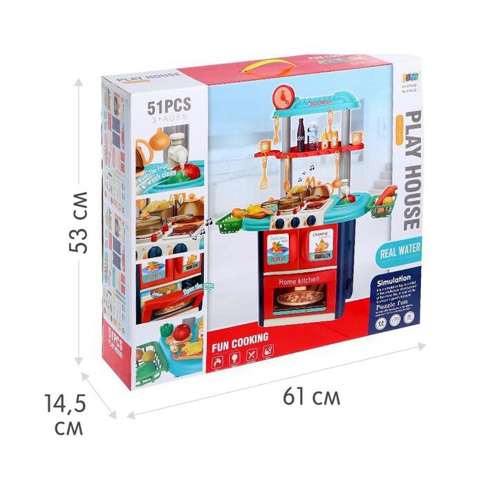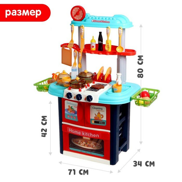 | В комплекте | духовой шкаф, игрушечная еда, плита, посуда, раковина, чайник |