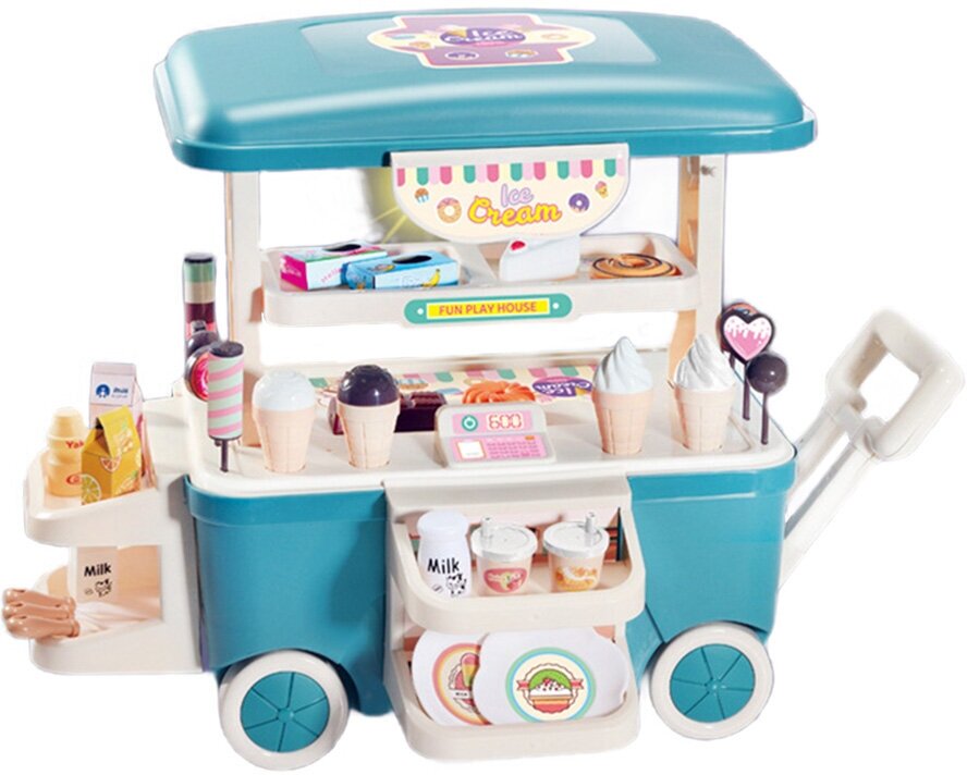 Купить Игрушечный магазин тележка Продавец мороженого + Подарок бирюзовый 38х30,5х52 см