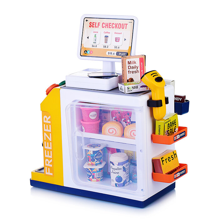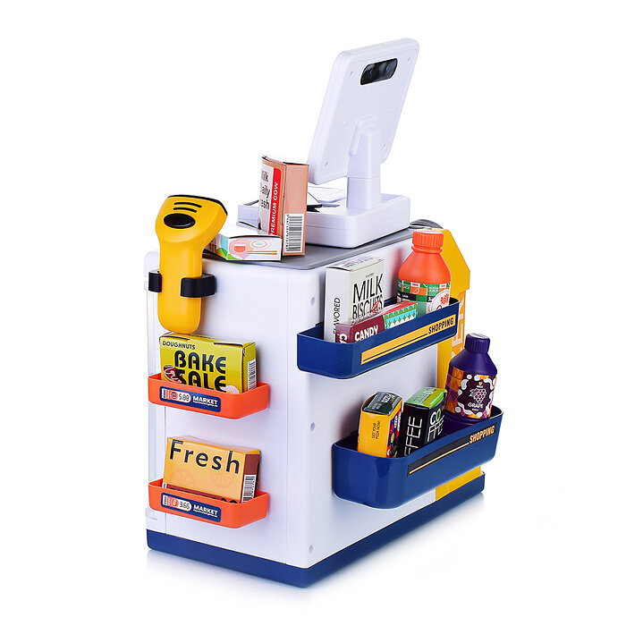 | В комплекте | деньги, прилавок, продукты, сканер |