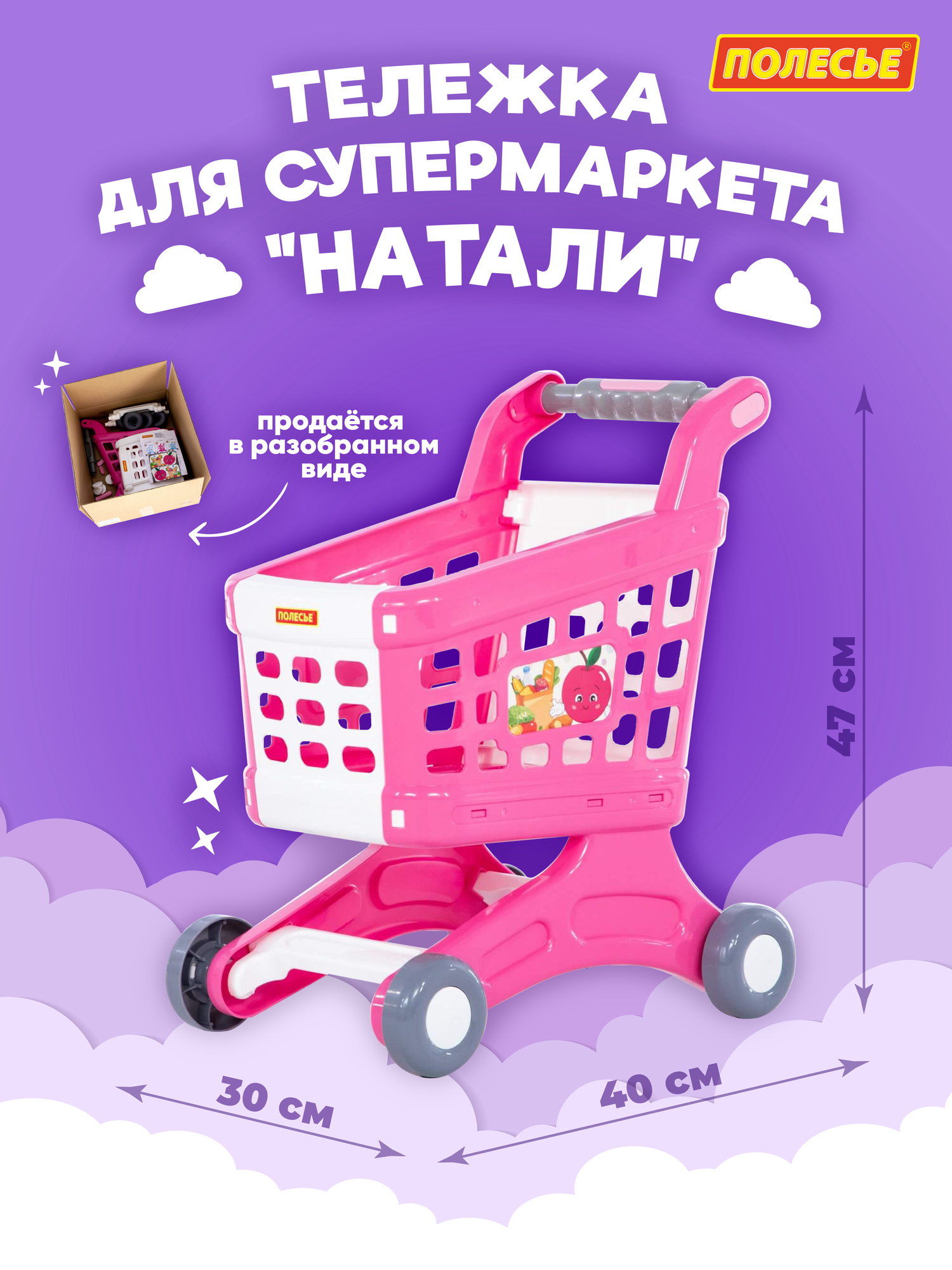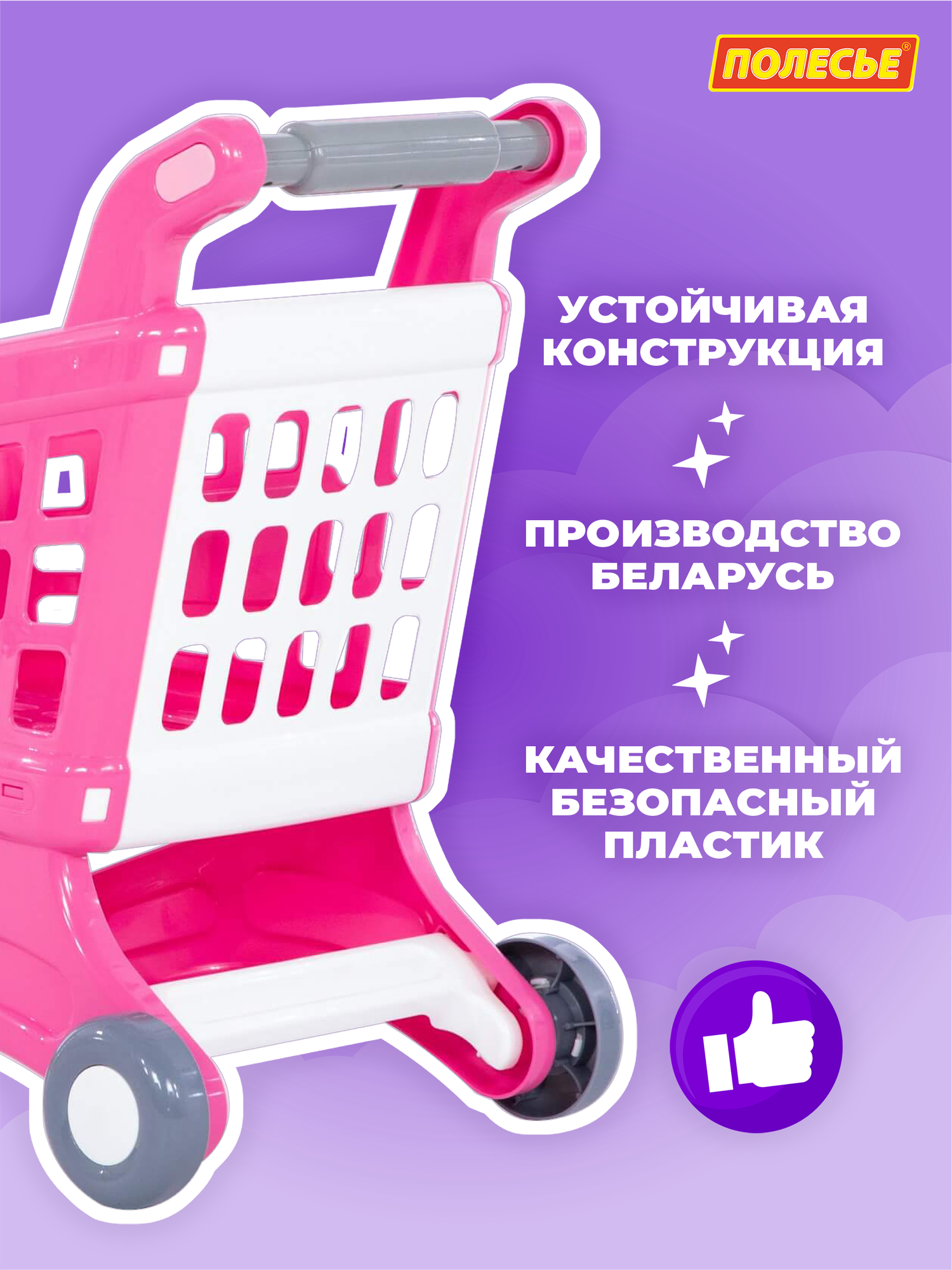 Тележка для продуктов супермаркета игрушечная розовая полесье интересное: