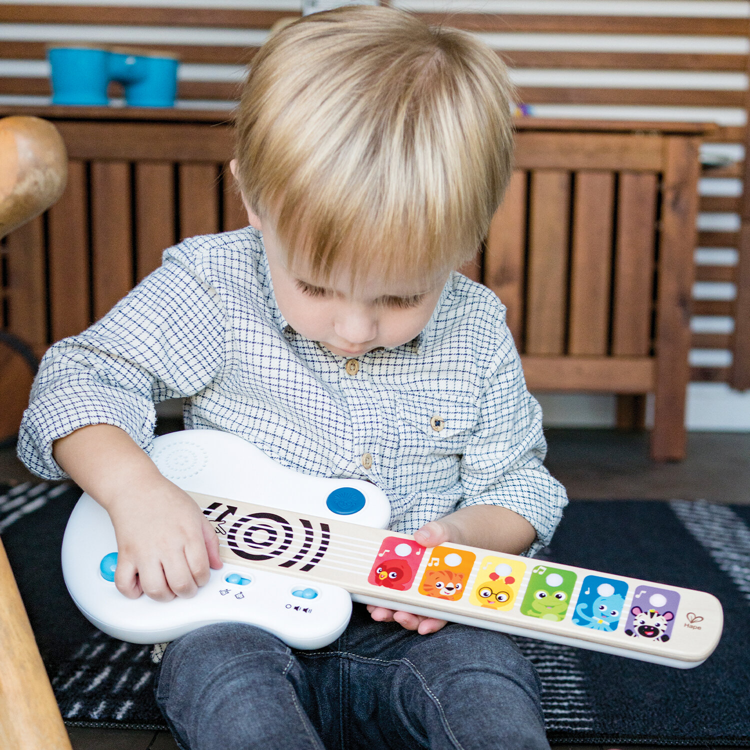 Музыкальная игрушка для малышей Hape "Гитара" Hape, сенсорная, Серия Волшебное прикосновение 12396_HP интересное: