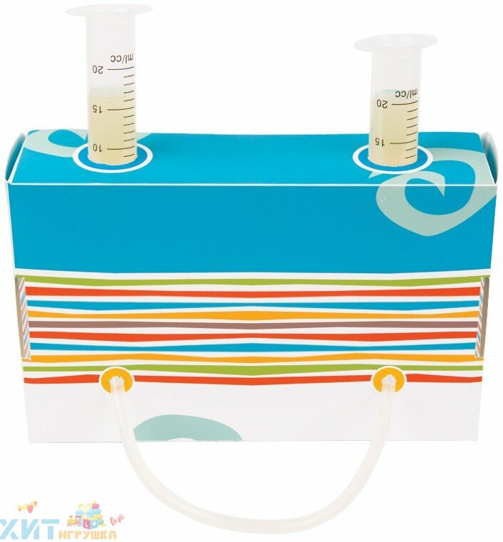| Комплектация | шприц (2 шт.), пластиковый стаканчик (1 шт.), губка (1 шт.), пластиковая трубка (1 шт.), фиксатор для бутылки (1 шт.), картонные детали для экспериментов, инструкция |