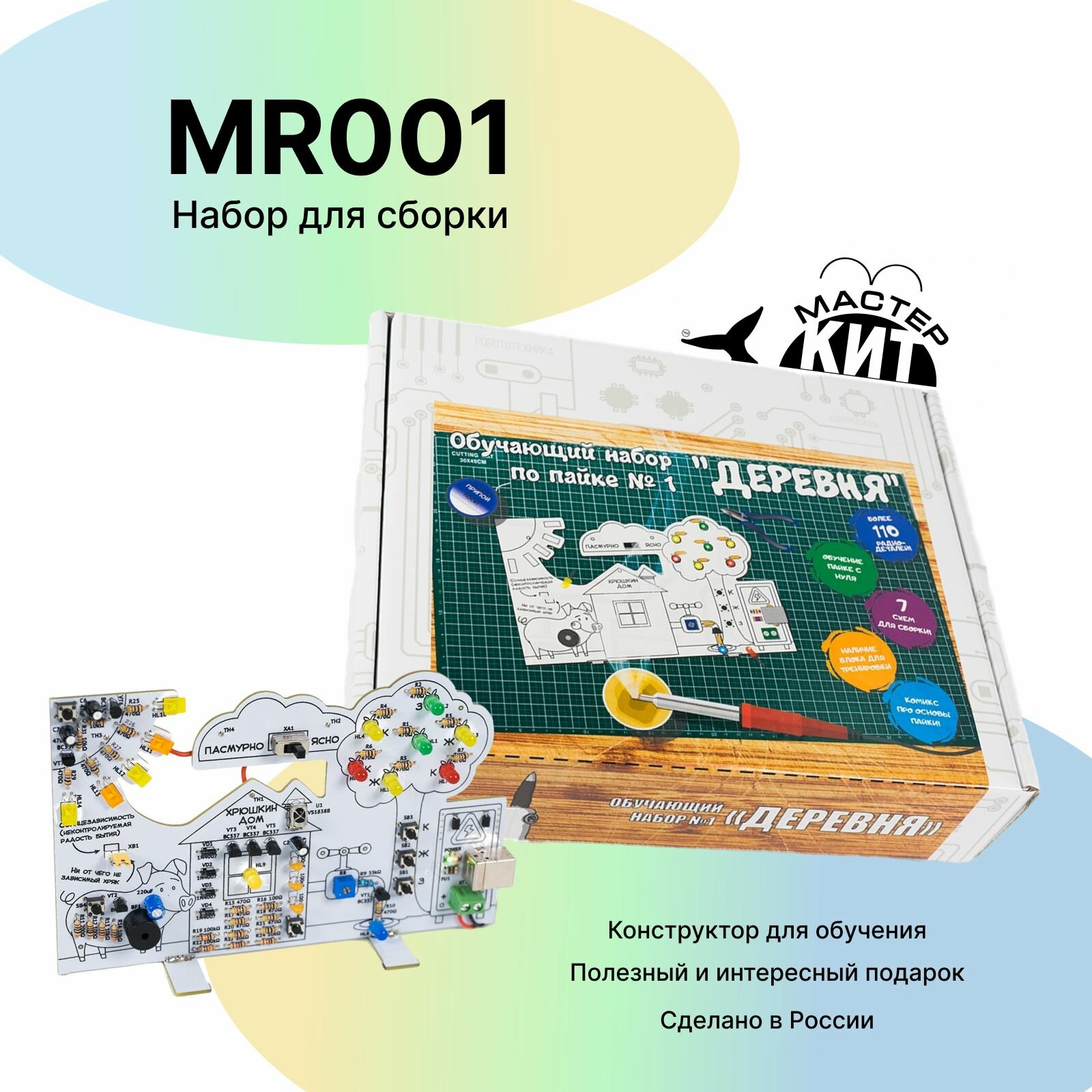 Обучающий набор для сборки и пайки "Деревня" - радиоконструктор, электронный конструктор, MR001 Мастер Кит интересное: