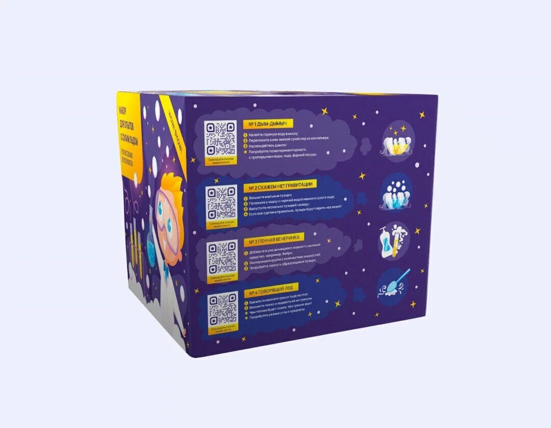 | Комплектация | Сухой лед, специальный термоконтейнер, инструкция по эксплуатациии, защитные перчатки, защитные очки, колба, мыльные пузыри, набор трубочек, пищевой краситель 3шт |