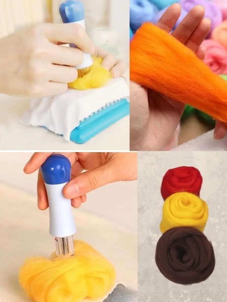 Инструмент для мокрого и сухого валяния с 7 финишными иглами и пробными моточками шерсти от бренда Кофанов интересное: