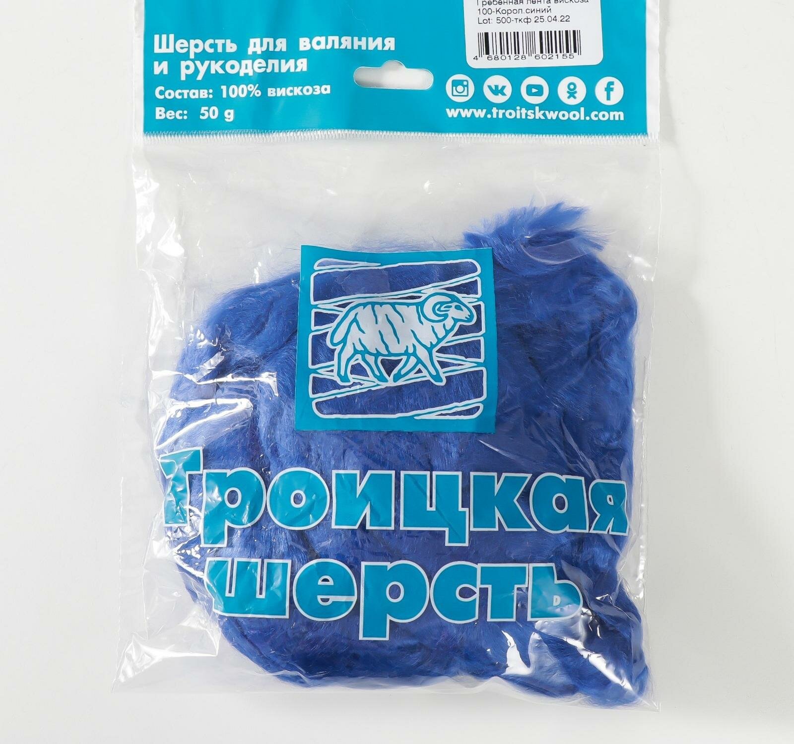 Шерсть для валяния ТРО Гребенная лента (вискоза) 50г цв.0100 королевский синий