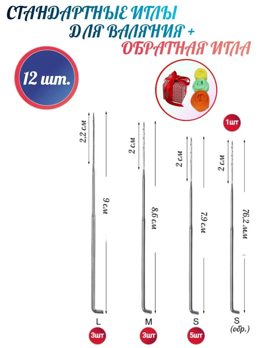 Набор для валяния 12 игл "Кофанов" с обратной иглой и пробными моточками шерсти интересное:
