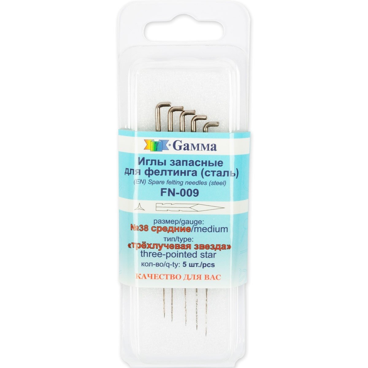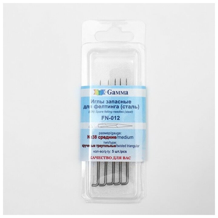 Иглы для валяния Gamma запасные, 5 шт, №38, средние, тип "Трехлучевая звезда" (FN-009) интересное: