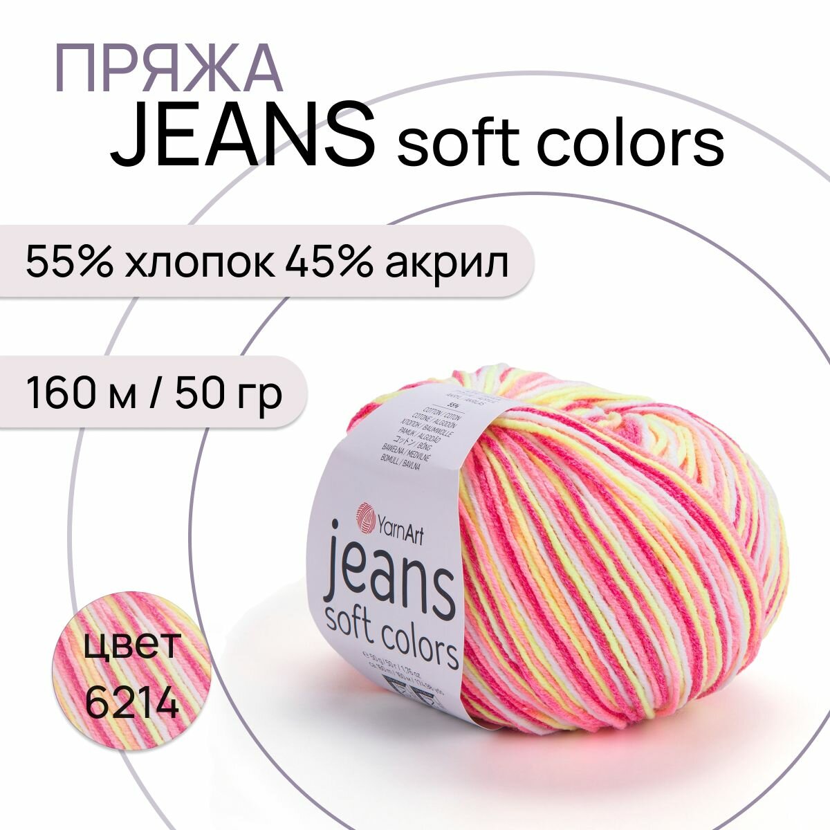 Пряжа YarnArt "Jeans Soft Colors", 50 гр 160 м, 55% хлопок, 45% акрил, 6202 секционный, 10 шт