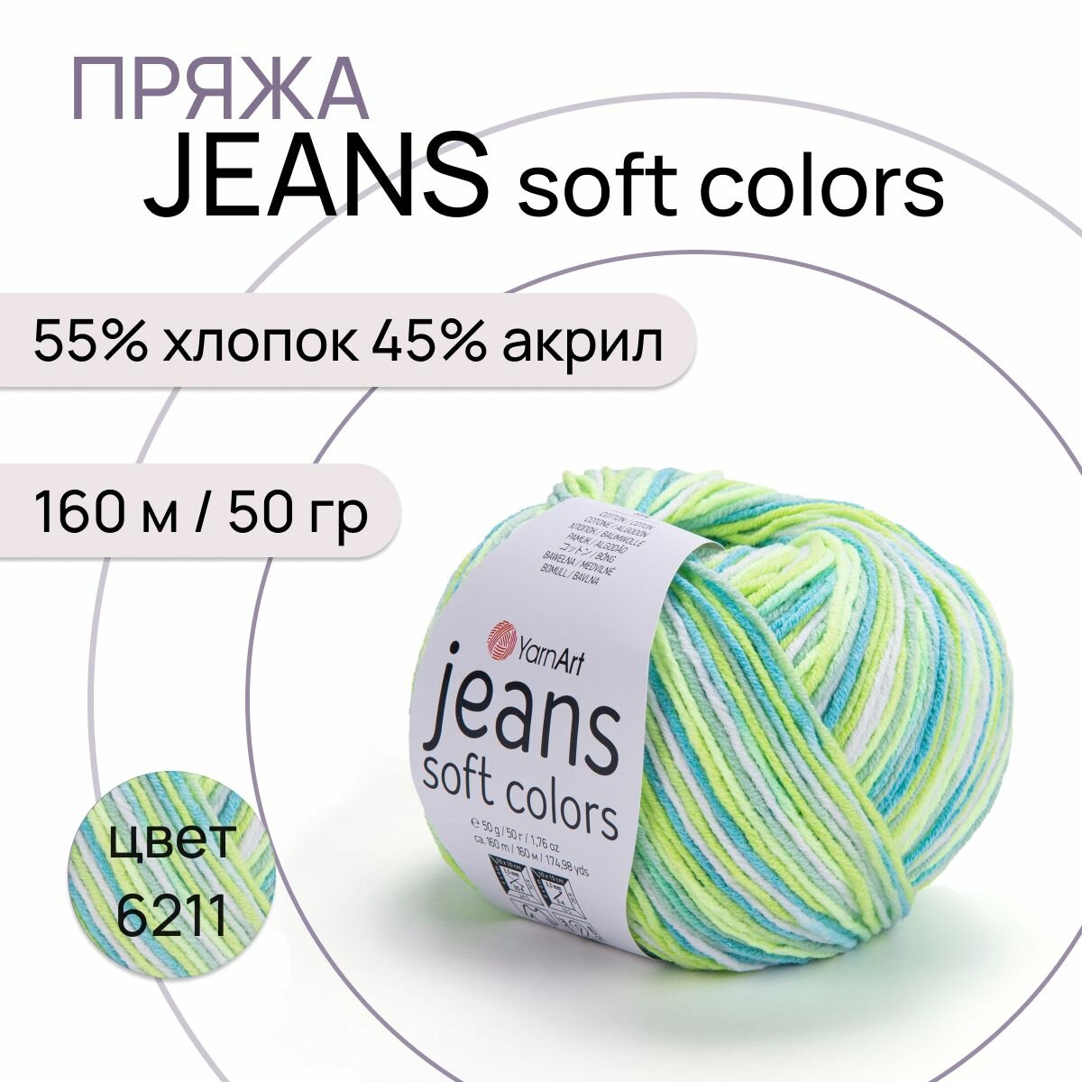 Пряжа YarnArt "Jeans Soft Colors", 50 гр 160 м, 55% хлопок, 45% акрил, 6211 секционный, 10 шт