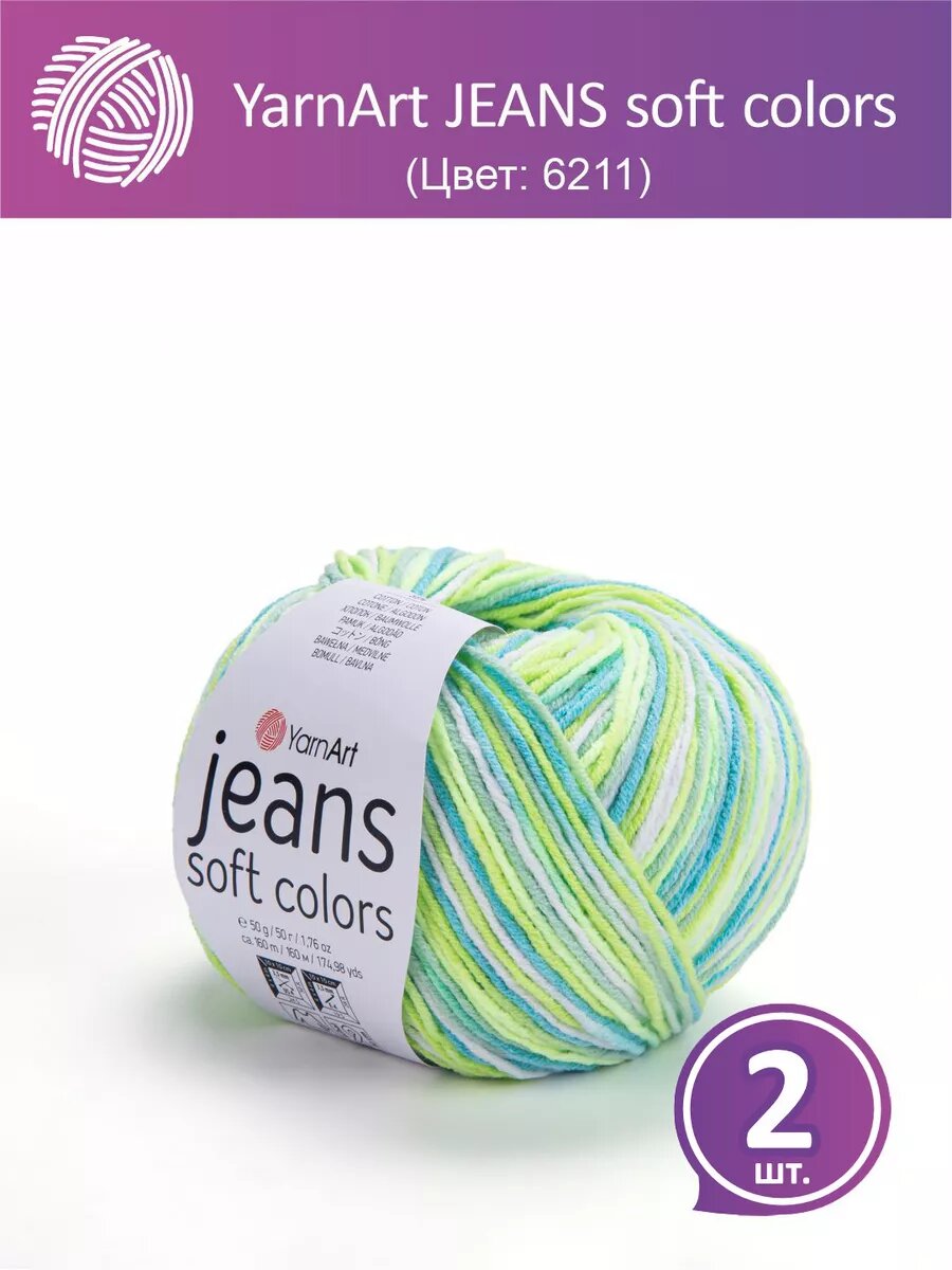 Пряжа YarnArt "Jeans Soft Colors", 50 гр 160 м, 55% хлопок, 45% акрил, 6211 секционный, 10 шт