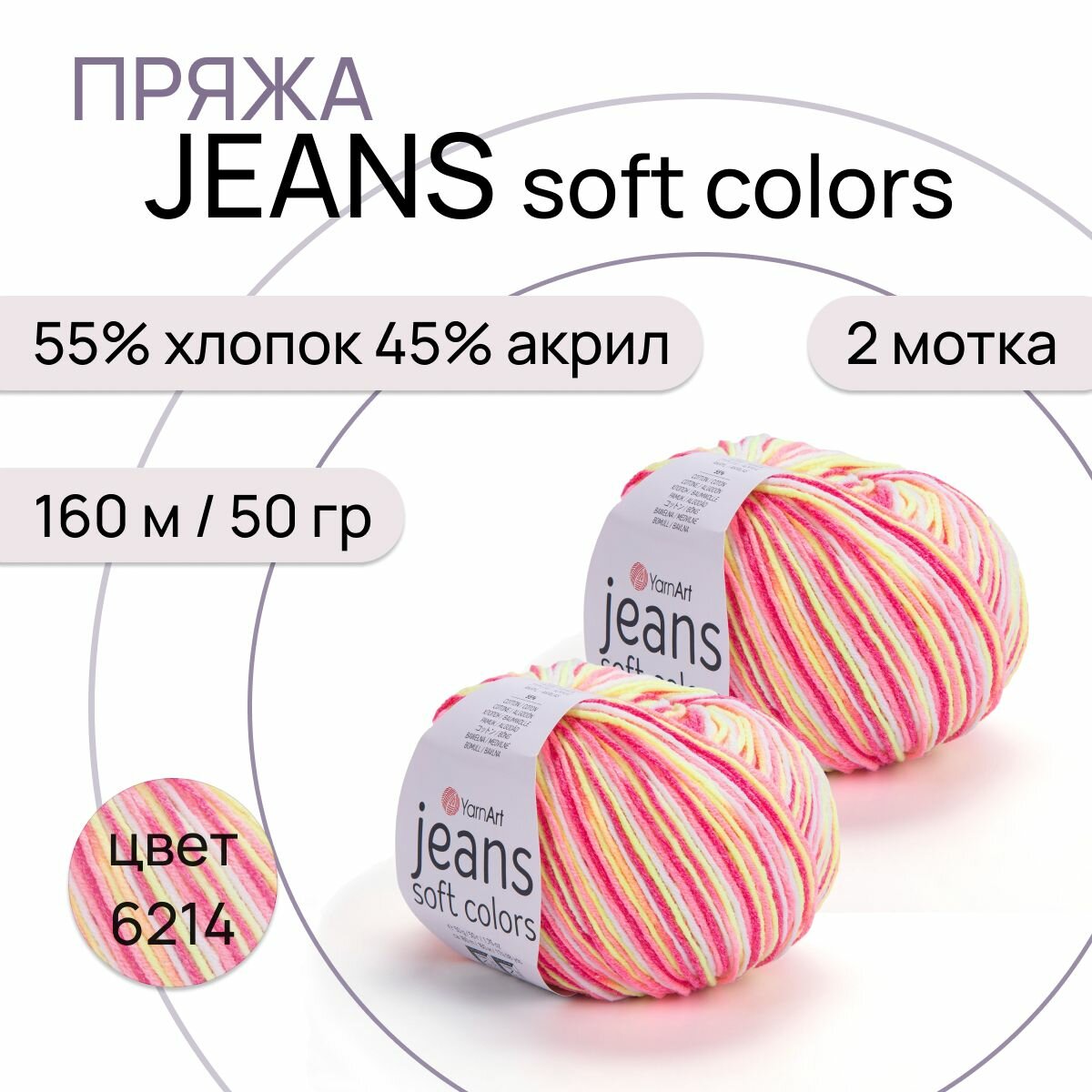 Пряжа YarnArt "Jeans Soft Colors", 50 гр 160 м, 55% хлопок, 45% акрил, 6214 секционный, 10 шт