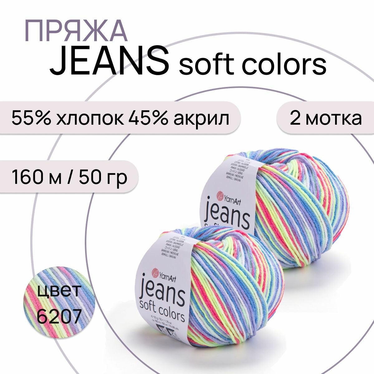Пряжа YarnArt "Jeans Soft Colors", 50 гр 160 м, 55% хлопок, 45% акрил, 6207 секционный, 10 шт