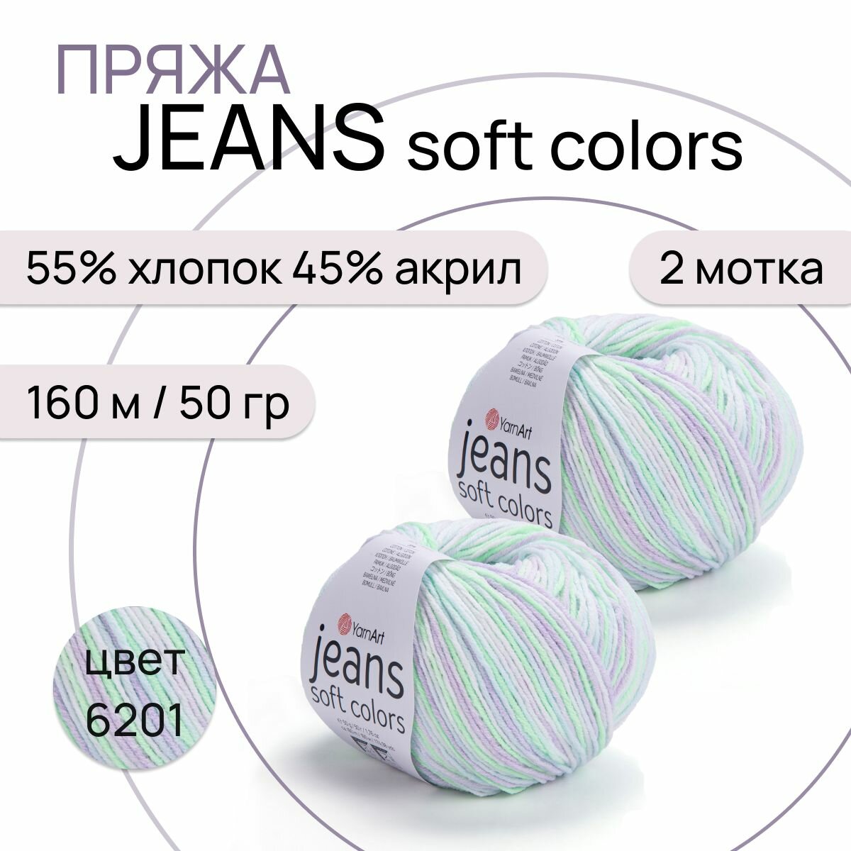 Пряжа YarnArt "Jeans Soft Colors", 50 гр 160 м, 55% хлопок, 45% акрил, 6201 секционный, 10 шт