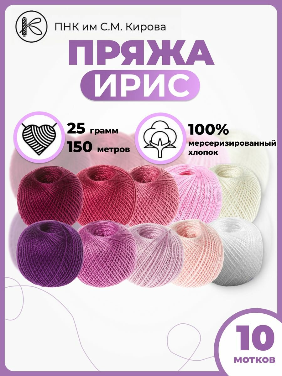 Пряжа Ирис мерсеризированный хлопок 25гр 150м набор10шт.