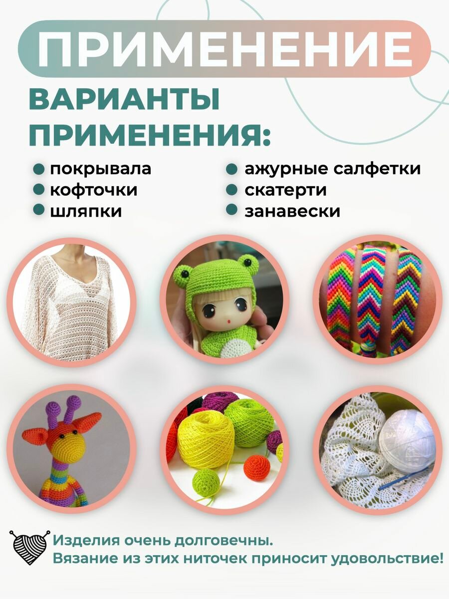 Нитки хлопковые для вязания Ирис 25гр 150м 5шт.