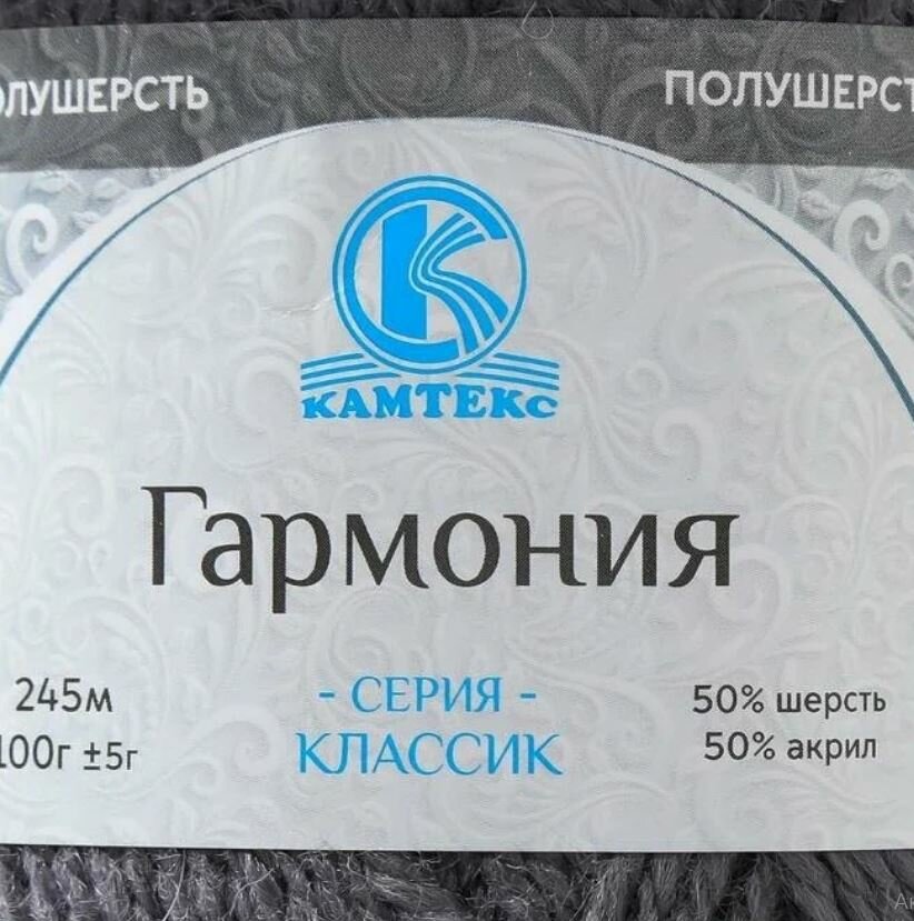 СохранитьПряжа для вязания Камтекс 'Гармония', 100г, 245м (50% шерсть, 50% акрил) (169 серый), 5 мотков интересное: