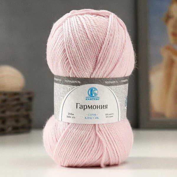 Пряжа Камтекс "Гармония", 100 г, 245 м, 50% шерсть, 50% акрил, цвет 192 Чайная роза, 5 мотков